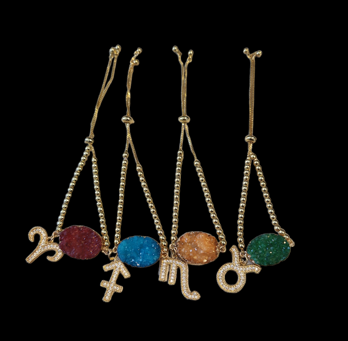 Experience the healing power of crystals with our Adjustable Zodiac Geode bracelets. These geodes can quickly remove pain and stress, soak up tension, frustration and stress, and repel radiation and EMF risks from your surroundings. With each geode, enjoy the calming benefits and restful muscle relief.