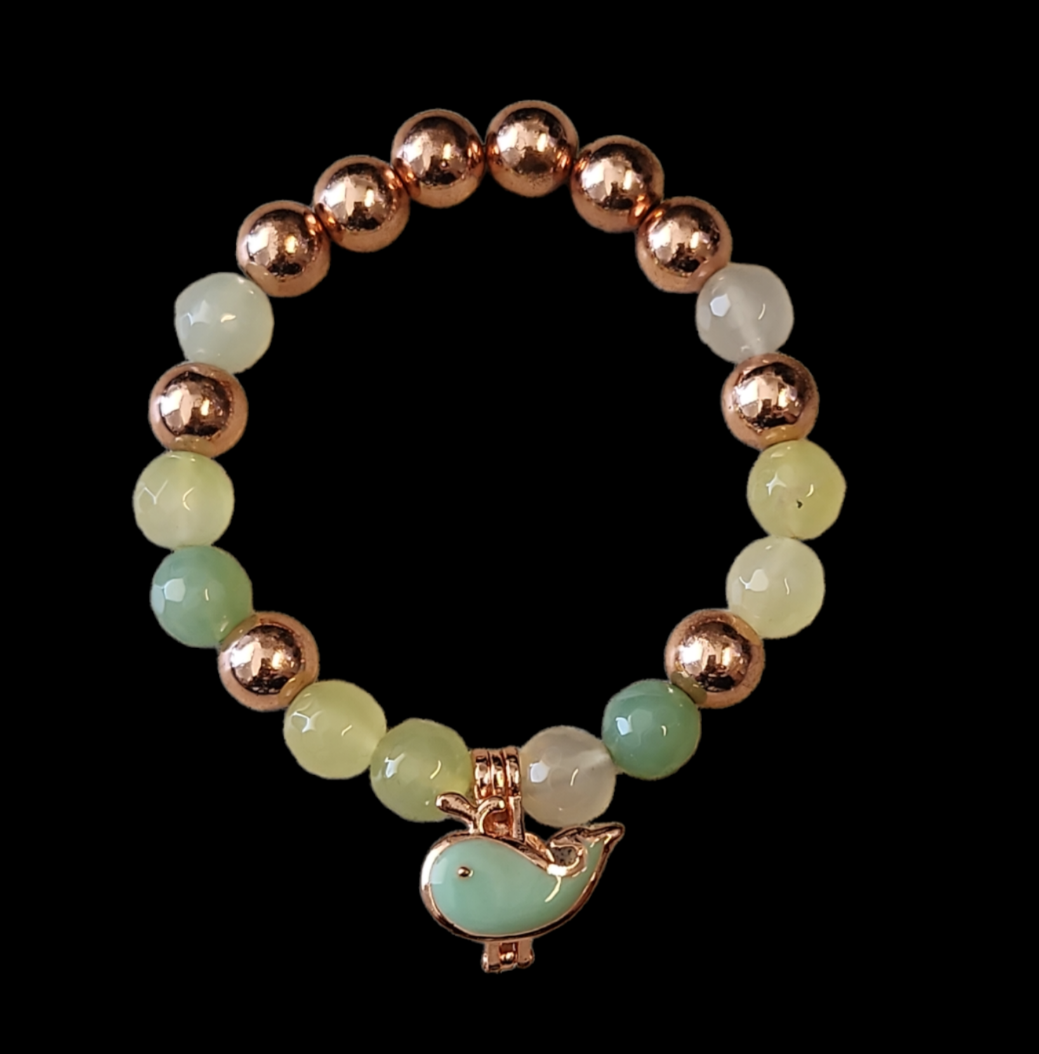 Look stylish and feel secure with this Agate and Rose Gold Hematite Bracelet. Hematite and Agate crystals help to ground and protect you, while the rose gold detailing adds a chic touch. Feel strong and stable with this reliable accessory.