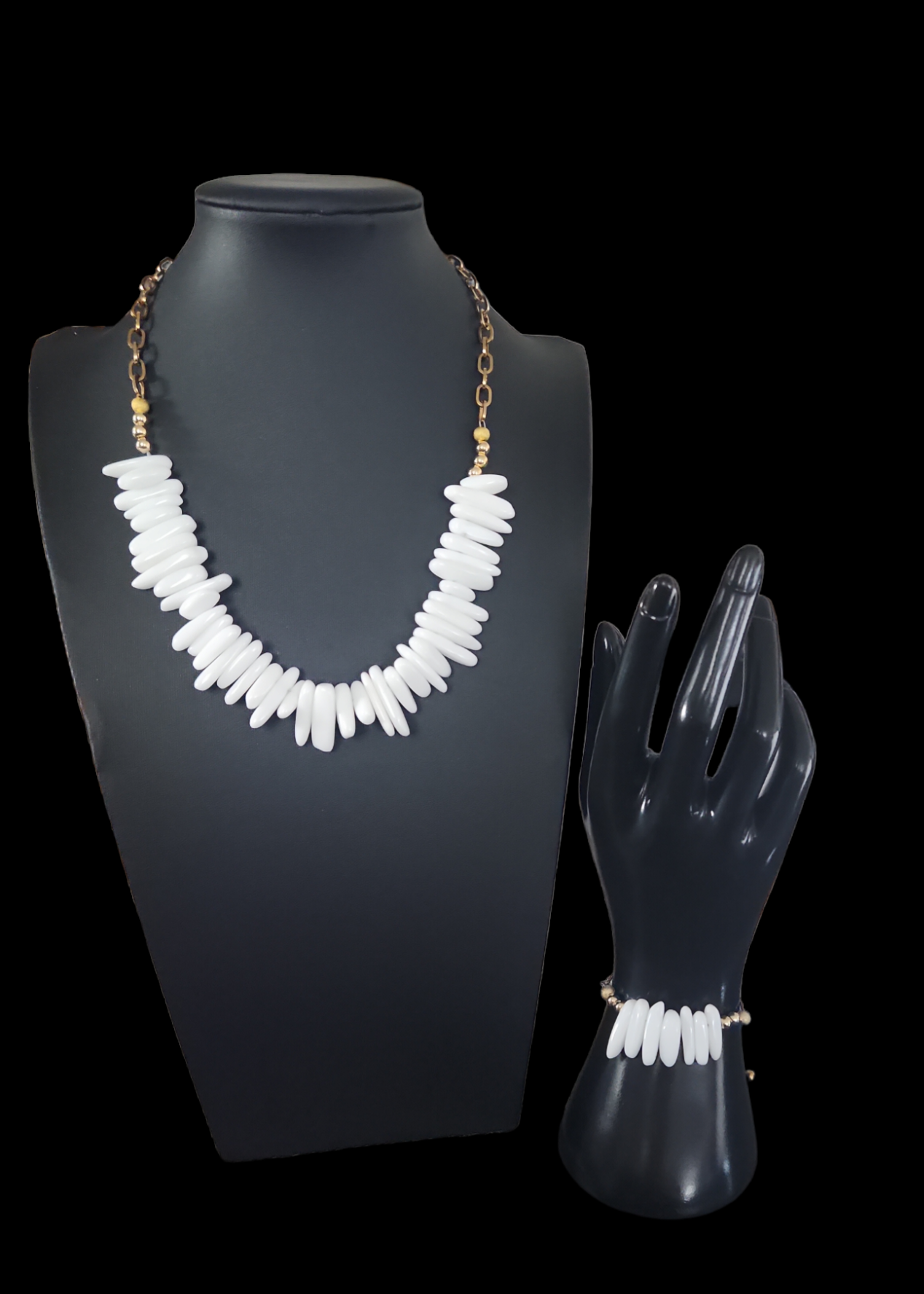 Look elegant in this unique Alabaster stone necklace set. With its ability to aid forgiveness and stimulate meditation, this necklace set is perfect for anyone looking to explore their spiritual side. Make a statement with this classic accessory for a beautiful finish.