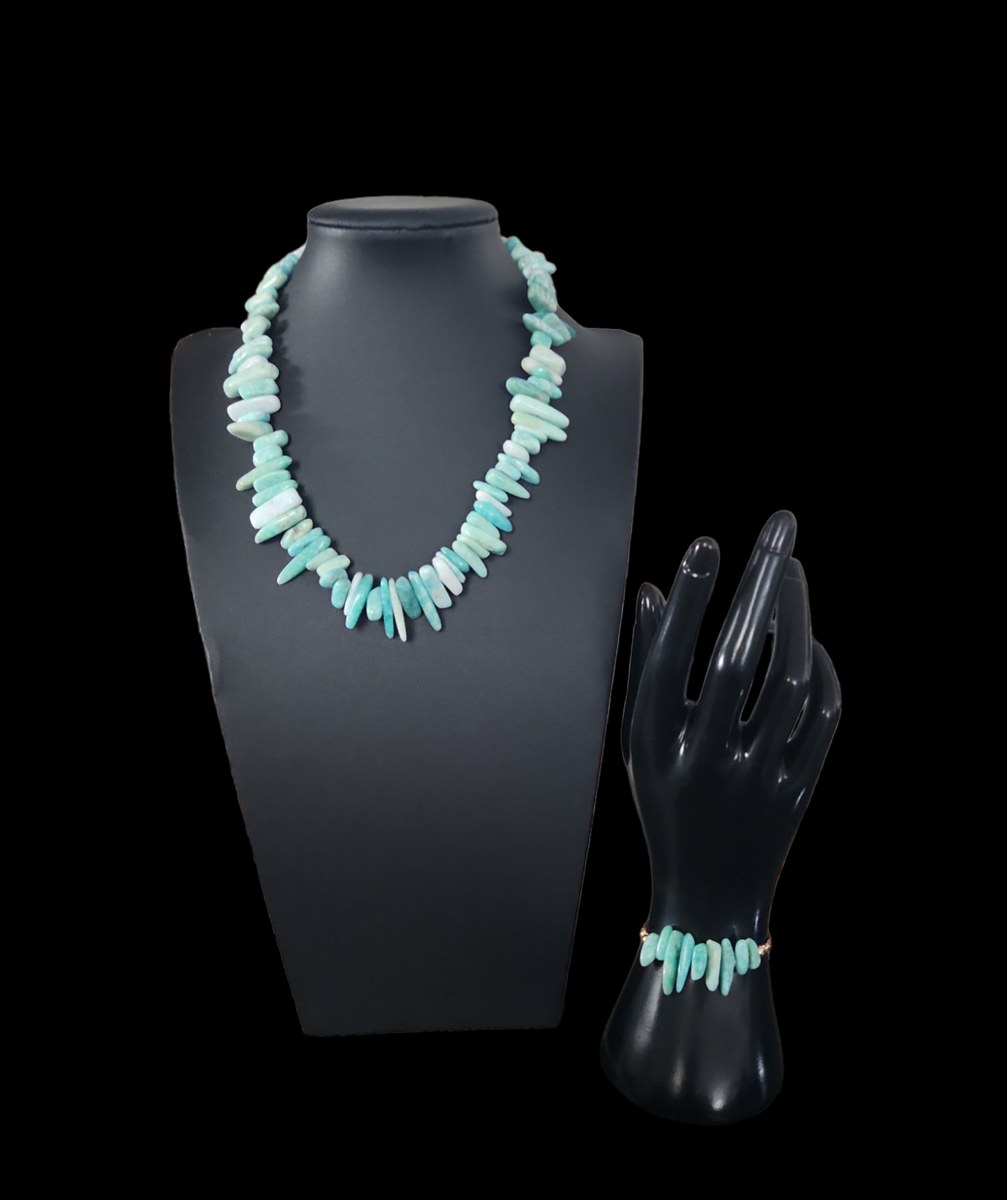 This 8.5" Amazonite necklace set brings healing properties to filter out harmful frequencies, and clear and balance energies to help you release worries and fears. It will also enhance loving communication, help dissolve negative energies and aggression, and give you a new perspective.