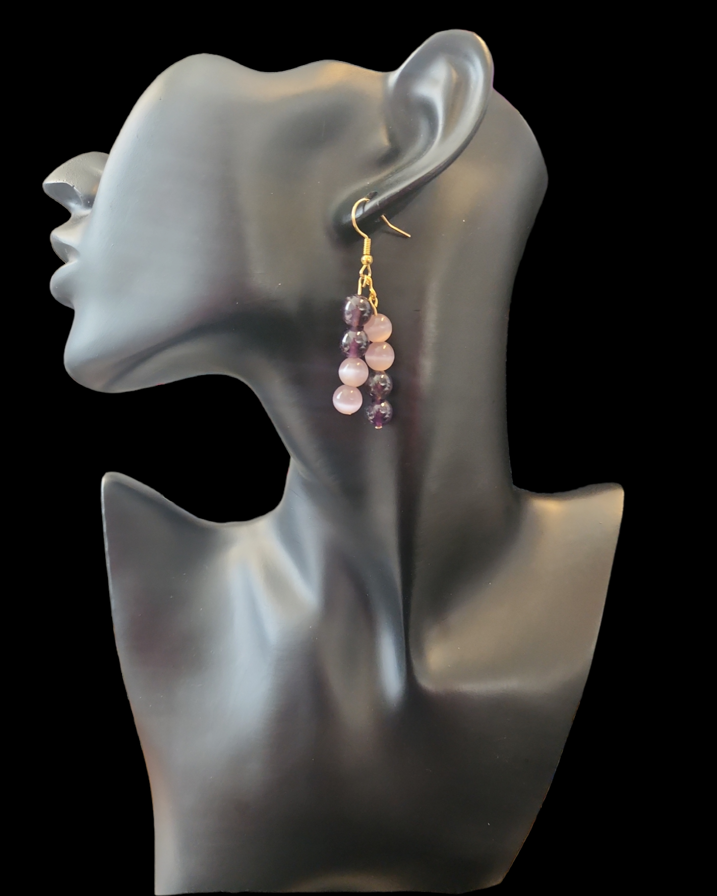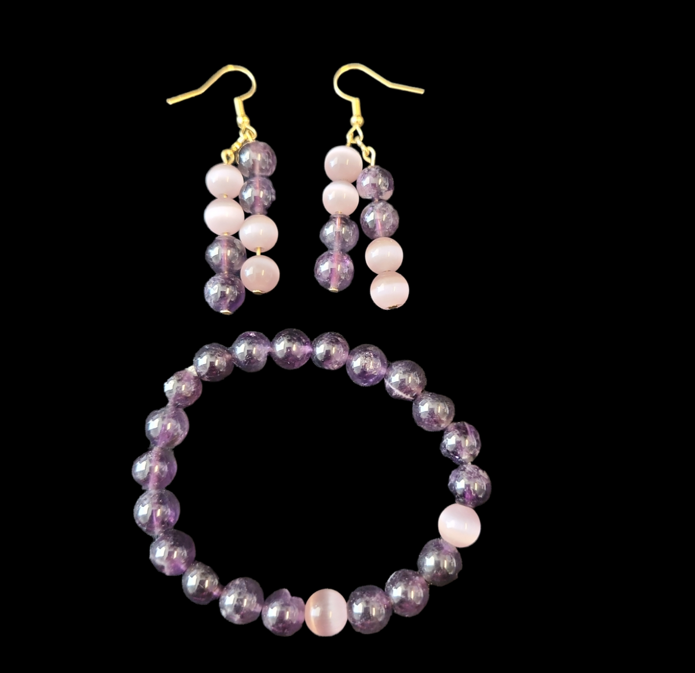 This stunning amethyst and cat eye set is a beautiful way to benefit from the natural calming properties of amethyst. Amethyst works to relieve stress and irritability, regulate moods, and dissolve negative energy. Perfect for everyday wear, this set will help boost your spiritual awareness and intuition!