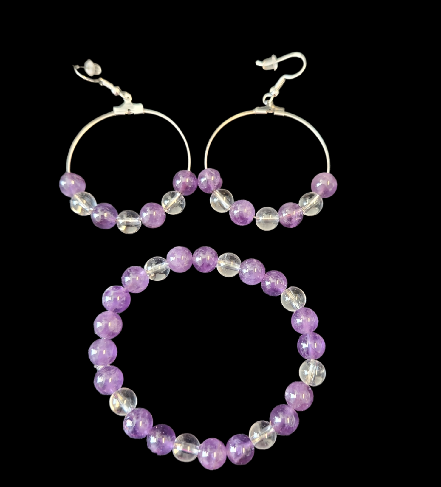 Make a statement with this Amethyst earring and bracelet set. Amethyst is a natural tranquilizer that can help alleviate stress, balance mood swings and promotes spiritual awareness – perfect for a mindful lifestyle.