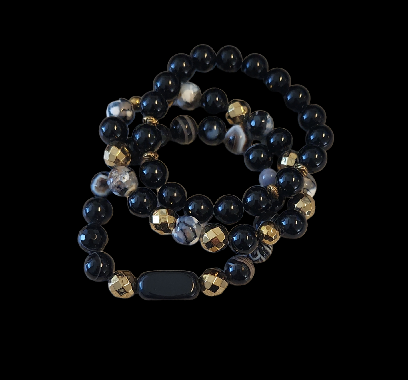This beautiful Black Agate & Gold Hematite Bracelet stack offers both protection and grounding for your energy and emotions. With its power to purify negative energy, increase courage and strength, and stabilize your balance and wellbeing, this is the perfect addition to your everyday look.