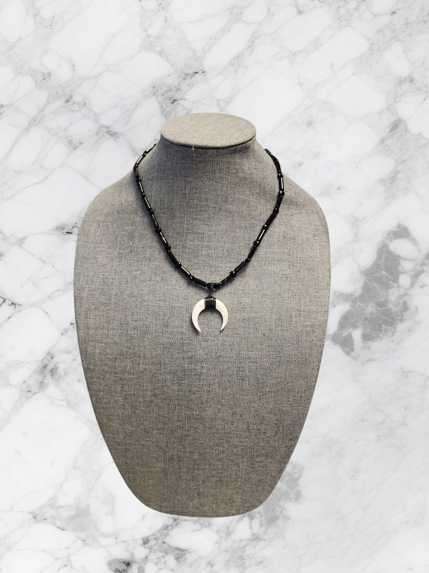 Make a statement with this stylish Black Agate Horn necklace! Featuring the protection, courage, and balance-boosting properties of agate, this 19" necklace is a beautiful way to bring strength and stability to your life. Horn is made of Mother of Pearl. Experience the calming effects of agate and the power to make your own destiny.