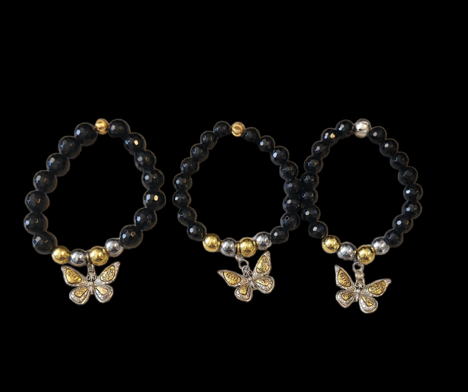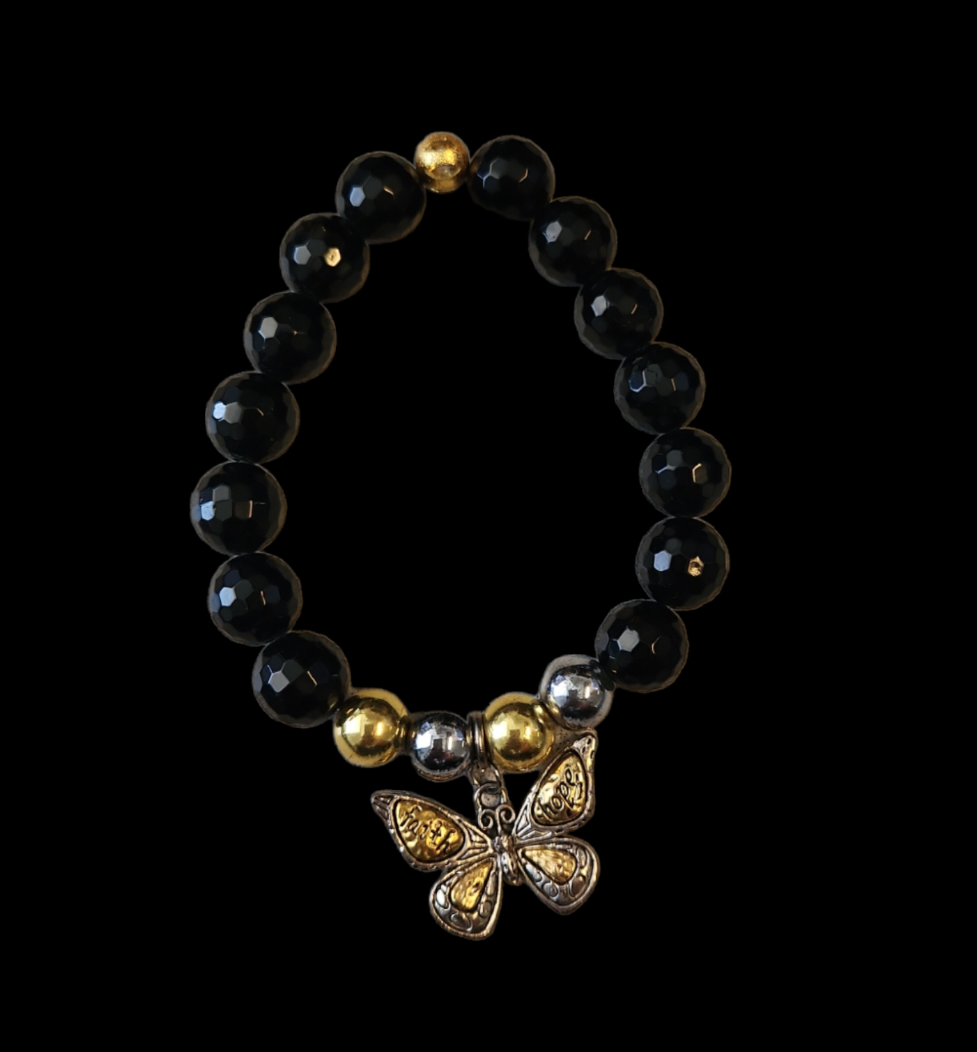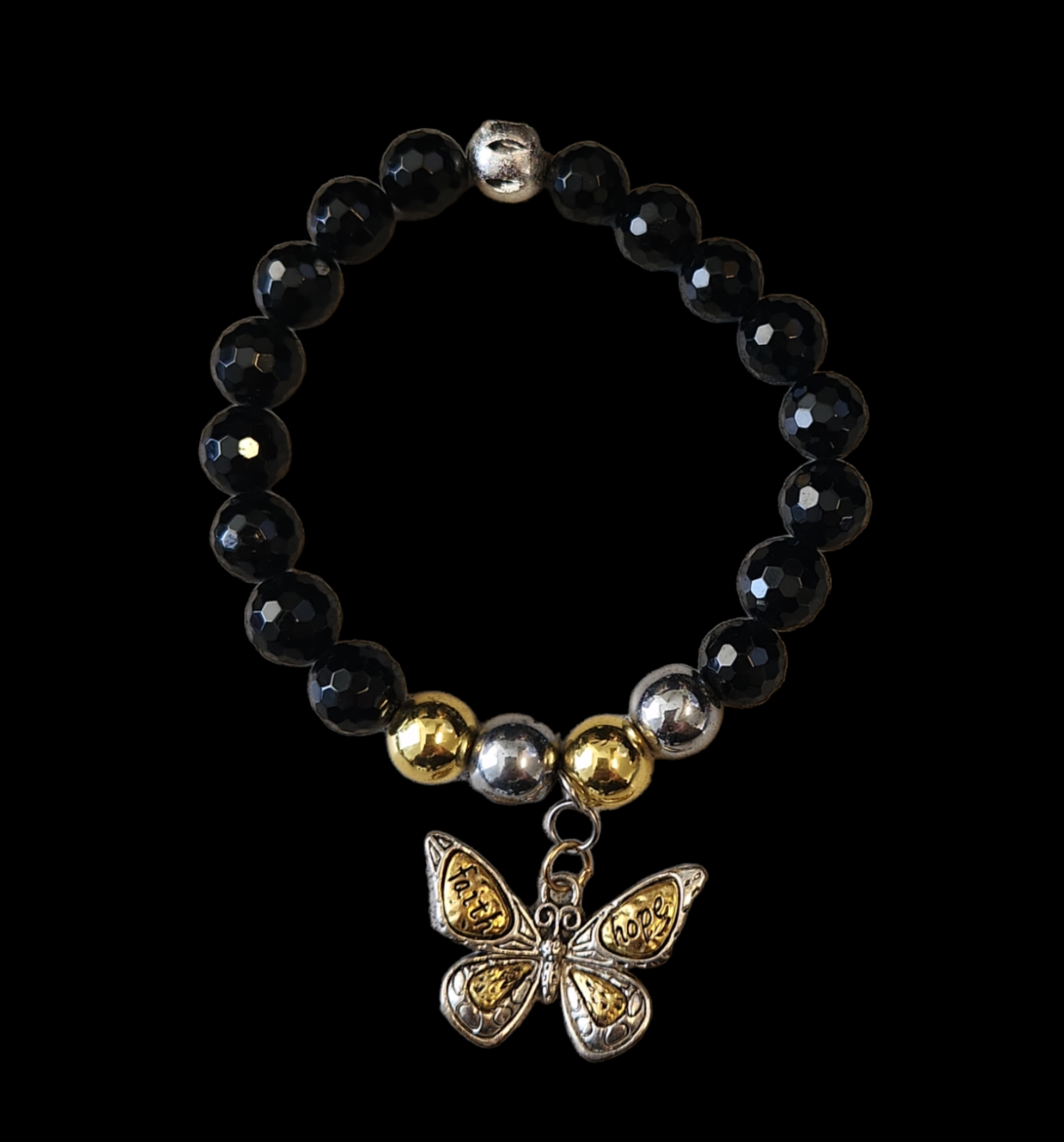 Feel the protective vibes of this beautiful Black Tourmaline Butterfly Bracelet. Black Tourmaline is a powerful stone to help protect against negative energies and EMF radiation, giving you a peaceful and secure feeling. Perfect for wearing or gifting!