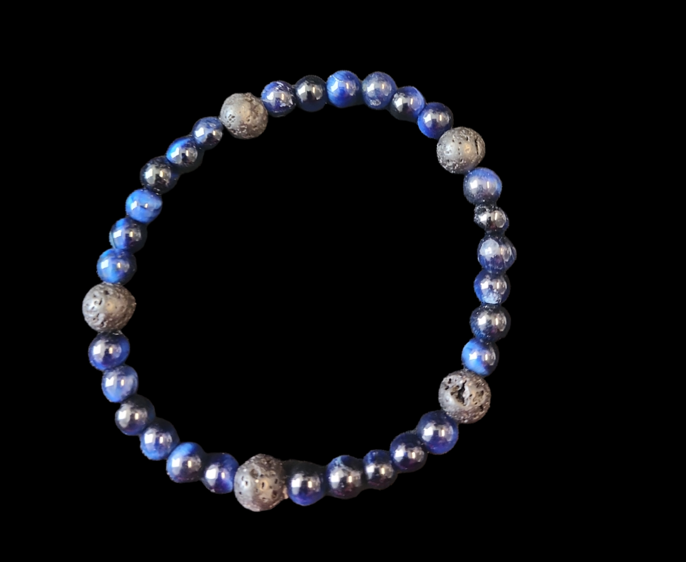 Be grounded and strong with this 9 1/2" blue cat eye and lava stone bracelet. Lava stone's connection to Mother Earth gives courage and stability, helping you through times of change. A beautiful addition to any jewelry collection.