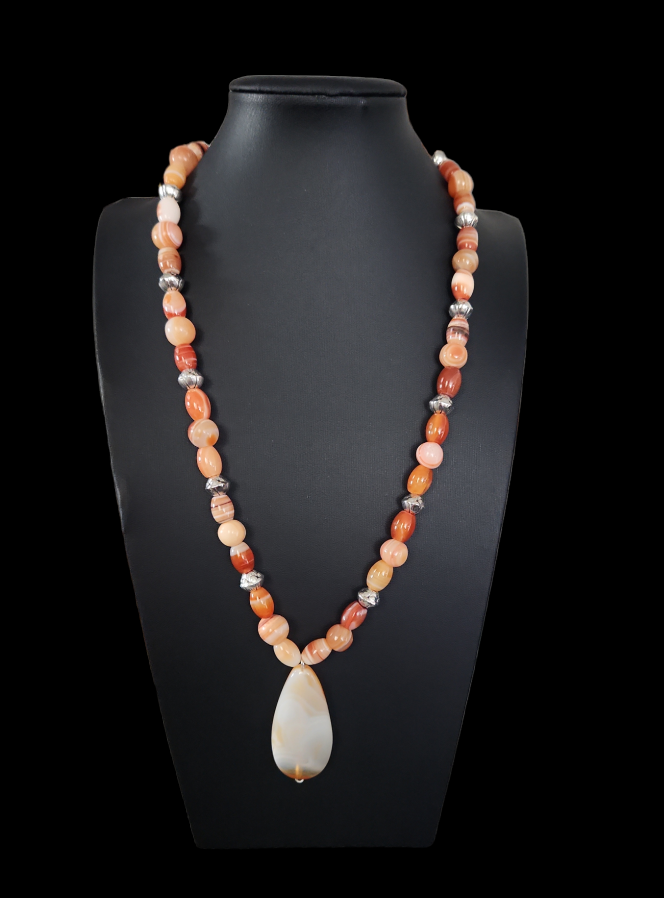 This Carnelian necklace and bracelet set is a perfect choice to restore your vitality and motivation. Carnelian is known for its healing properties, which can give you courage and help with making positive life changes. A beautiful addition to your jewelry collection.