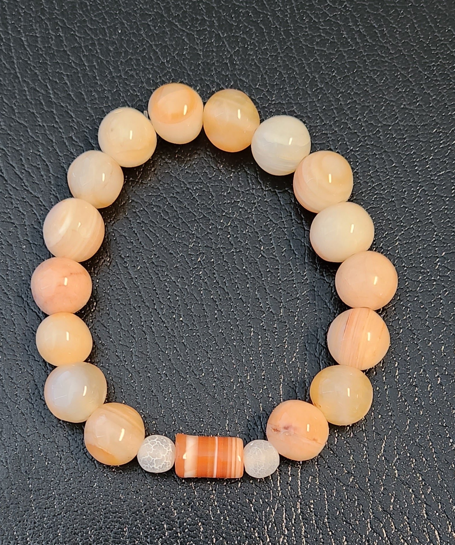 Add a splash of energy to your wardrobe with this chunky Carnelian bracelet. Carnelian is said to restore vitality and motivation, giving you the courage to make positive life changes. Embrace your power today!