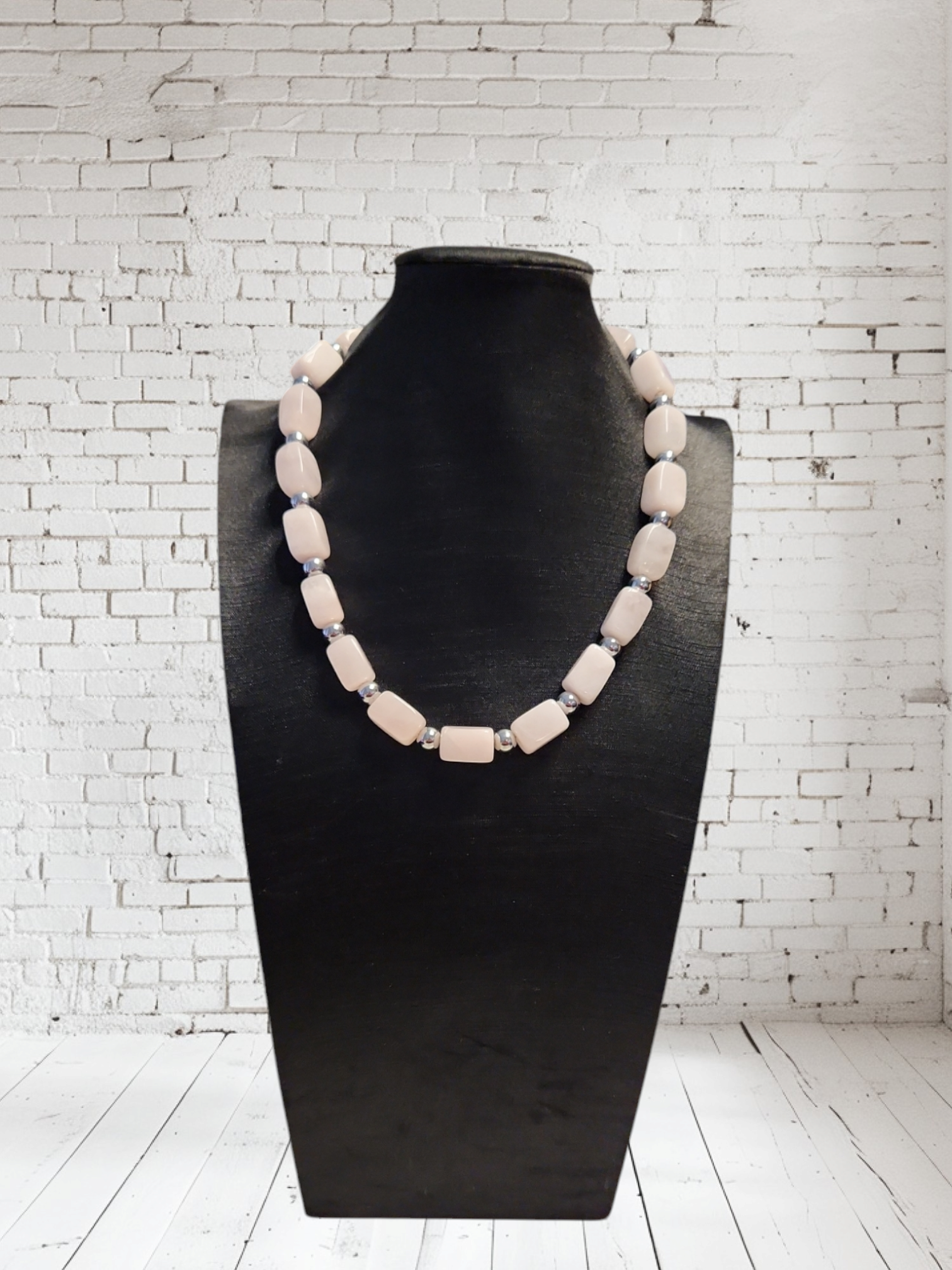 Discover the powerful properties of natural rose quartz and hematite with our Chunky Quartz Choker. The chunky design not only adds a trendy touch to your outfit, but also provides potential benefits such as promoting love and harmony while grounding and balancing your energy. Experience the beauty and benefits of this choker today.