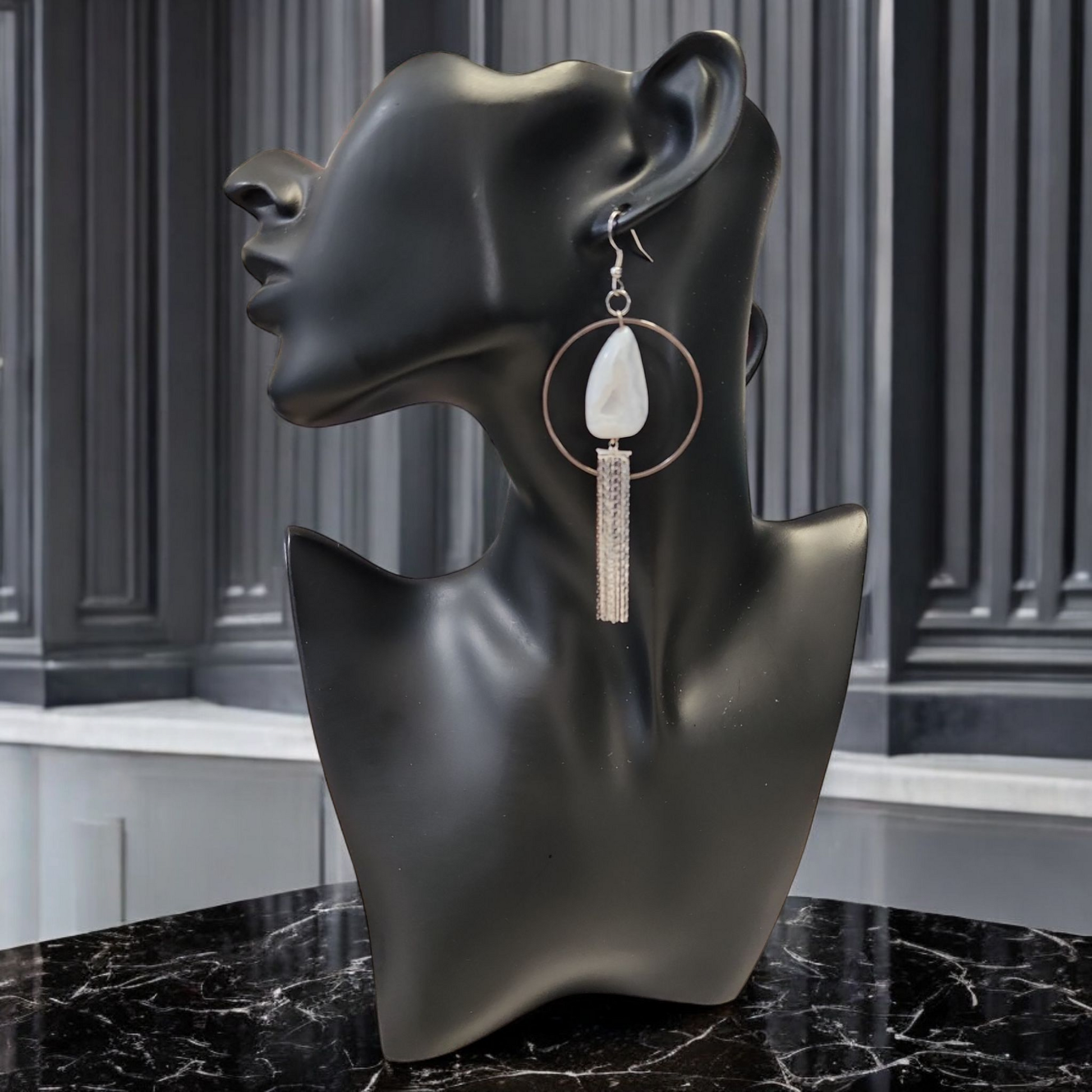 Complete your boho-chic look with our Divine Blue Lace Agate Fringe Earrings. The beautiful blue agate stones paired with delicate fringe detailing add a touch of elegance to any outfit. Handcrafted for a unique and stylish addition to your jewelry collection. Embrace your inner free spirit with these stunning earrings. Please note; Blue Lace Agate stone shapes and sizes vary due to them being natural stones.