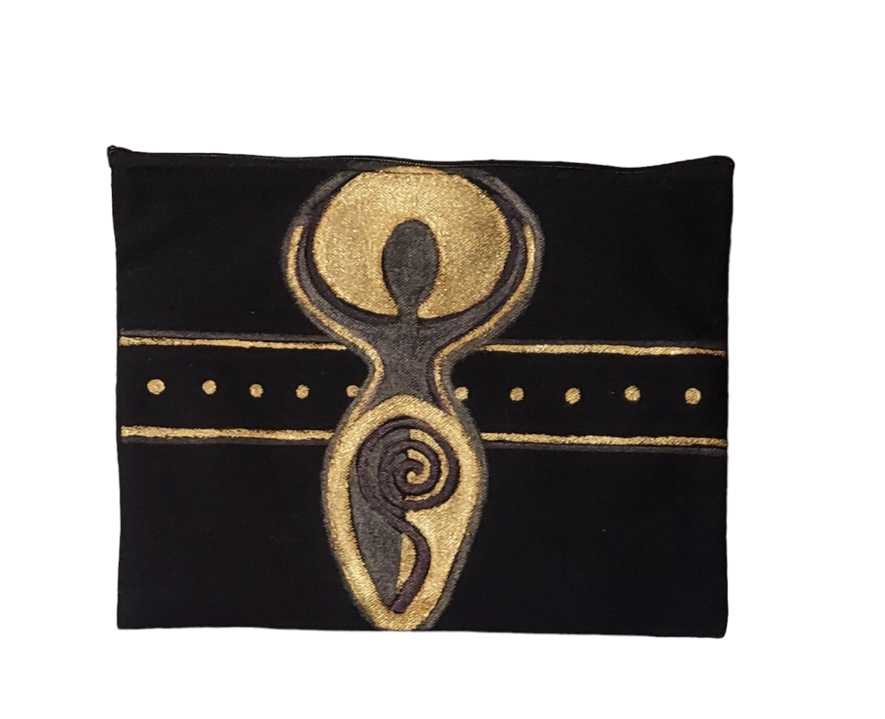 Keep your essentials organized and looking divine with the Divinely Gold Goddess bag. Its small size and classic design make it perfect for holding all your makeup or essentials in one place. With 8.75"x 7" of space, it's the perfect size to fit in any bag or drawer. Available to ship immediately.