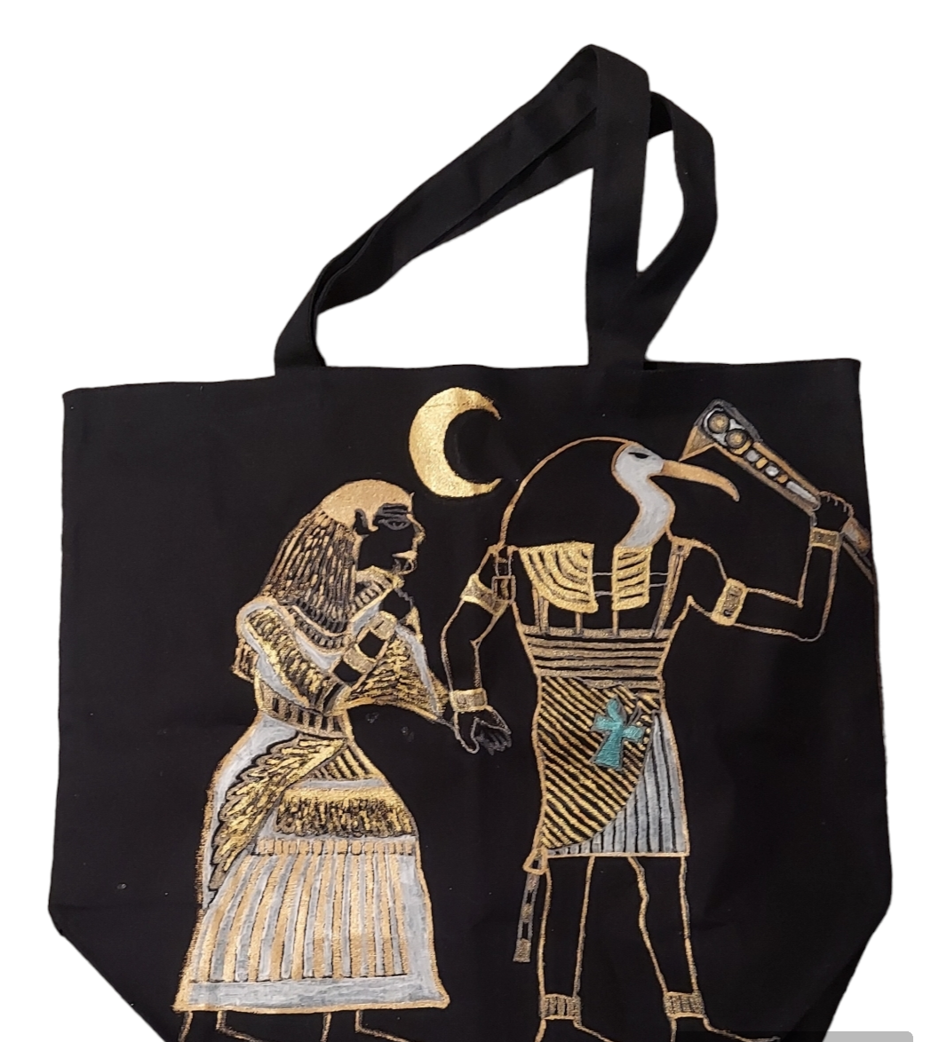 This Egyptian Lovers tote bag is perfect for keeping all your essential items organized and secure. With its wide base and long strap, this bag is spacious enough for all your everyday items and easily zips shut for a worry-free closure. Make carrying essentials a breeze with this stylish and functional bag. Available to ship immediately.