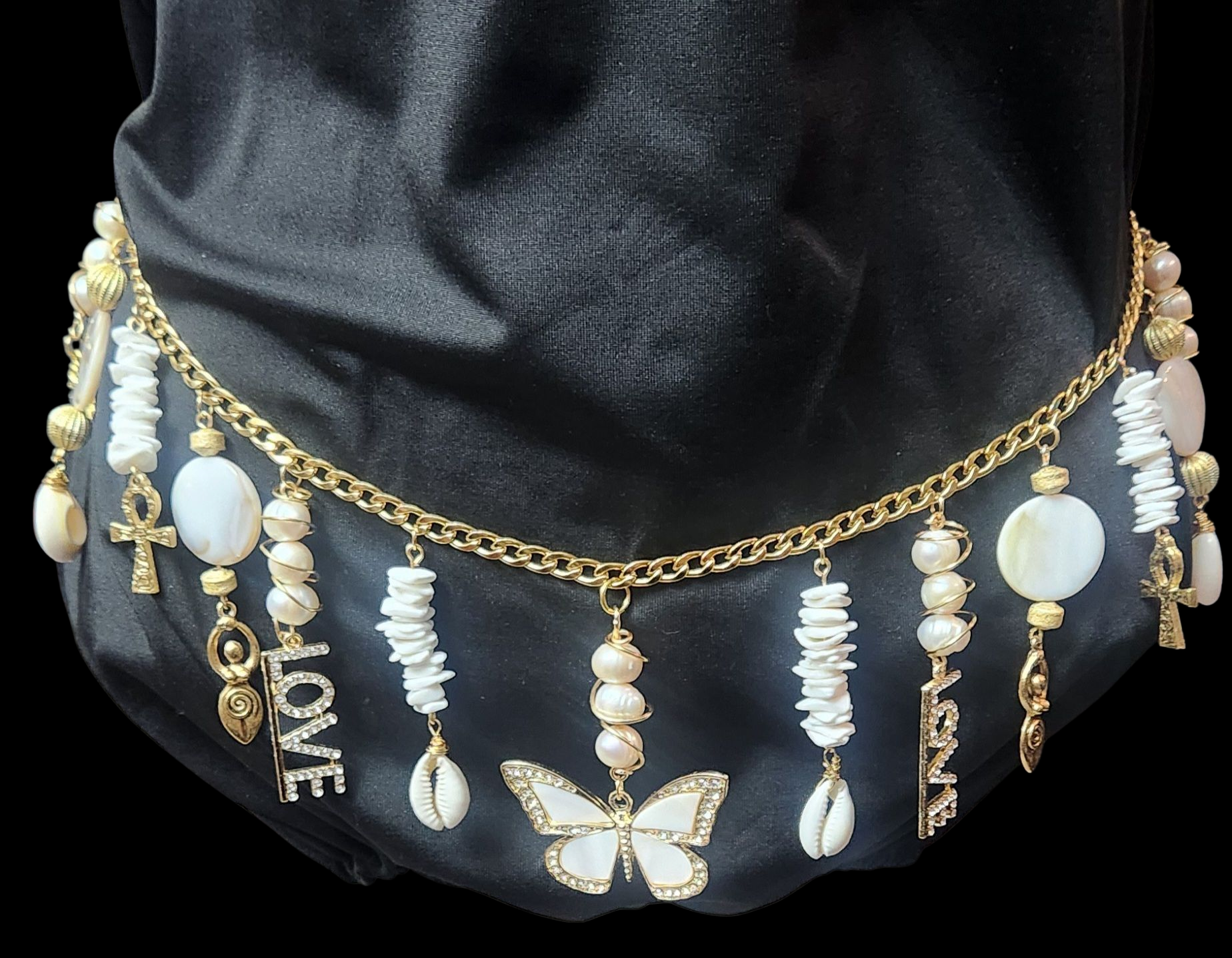 Celebrate your unique beauty with the Goddess of Love waist chain, crafted from durable gold stainless steel. Adorned with luminous mother of pearl, delicate freshwater pearls, and charming cowrie shells, this piece embraces your natural elegance. Perfect for adding a touch of grace and confidence to any outfit, it supports your journey of self-love and empowerment.