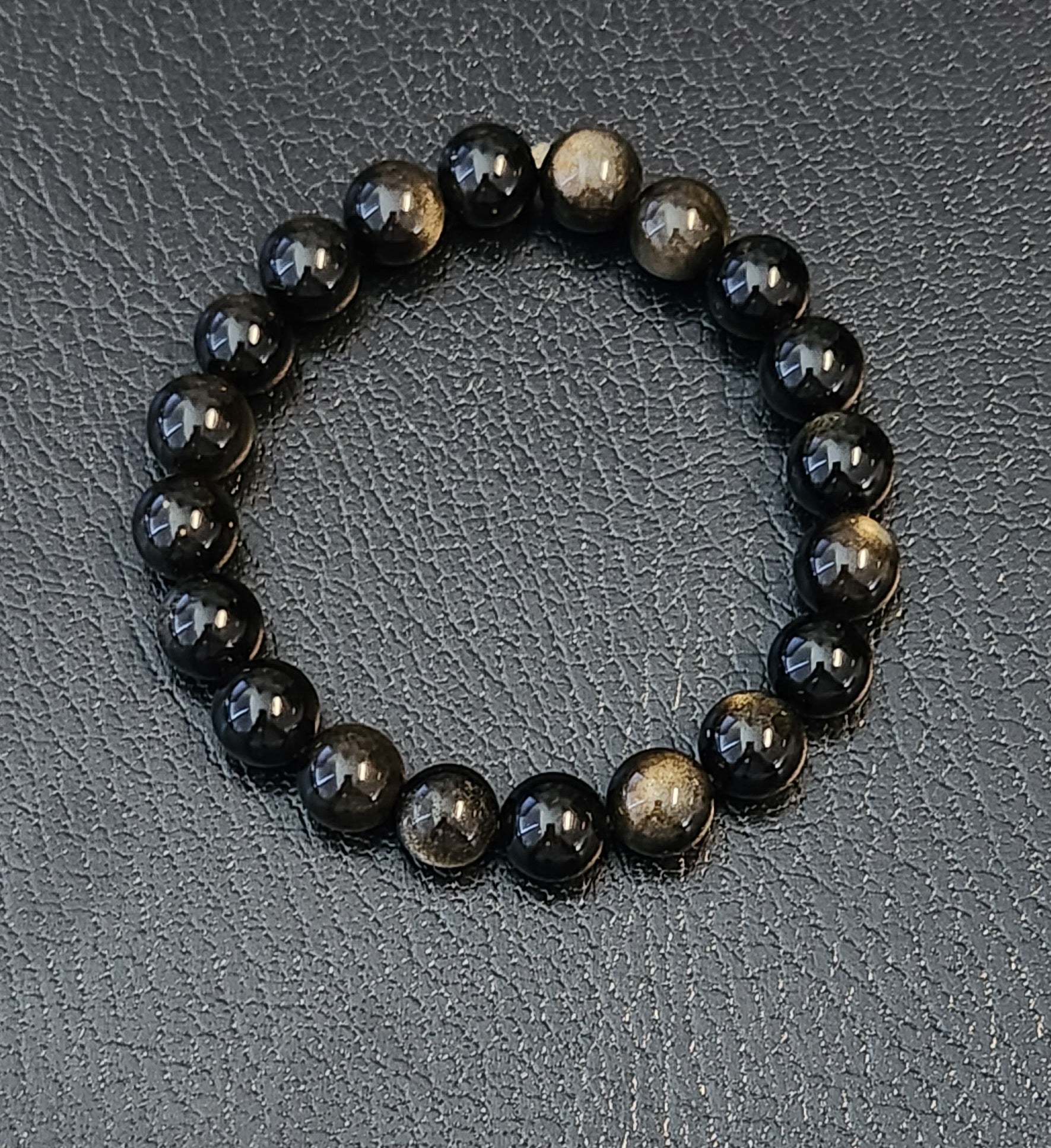 Elevate your style with our 9" Gold Sheen Obsidian Bracelet. A protective and grounding stone, Gold Sheen Obsidian is believed to protect from negative energies, thoughts, and feelings. It also helps keep your ego in check promoting positive thinking and helping you stay centered. Connect with your inner power and let this beautiful bracelet take care of the rest.