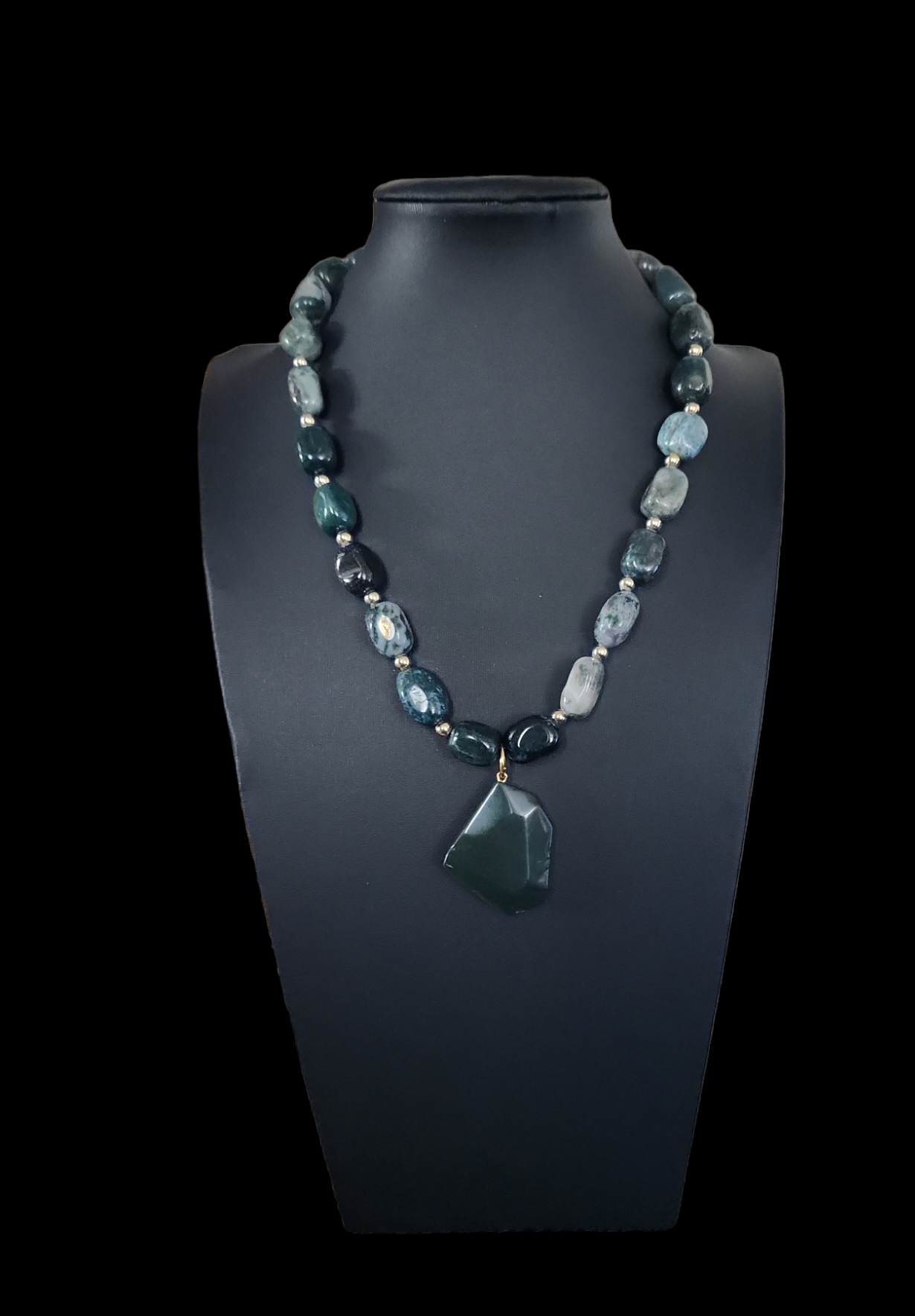 Wear this Green Moss agate & Bloodstone 10.5" necklace to unlock your creative potential and protect yourself from negative energy. This powerful gemstone combination is said to promote fertility and abundance, manifest dreams, and boost your self-healing powers. Start anew today!