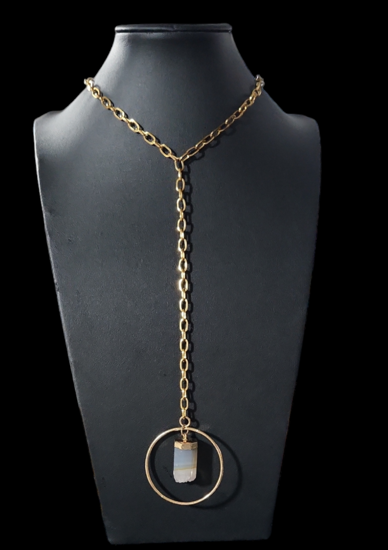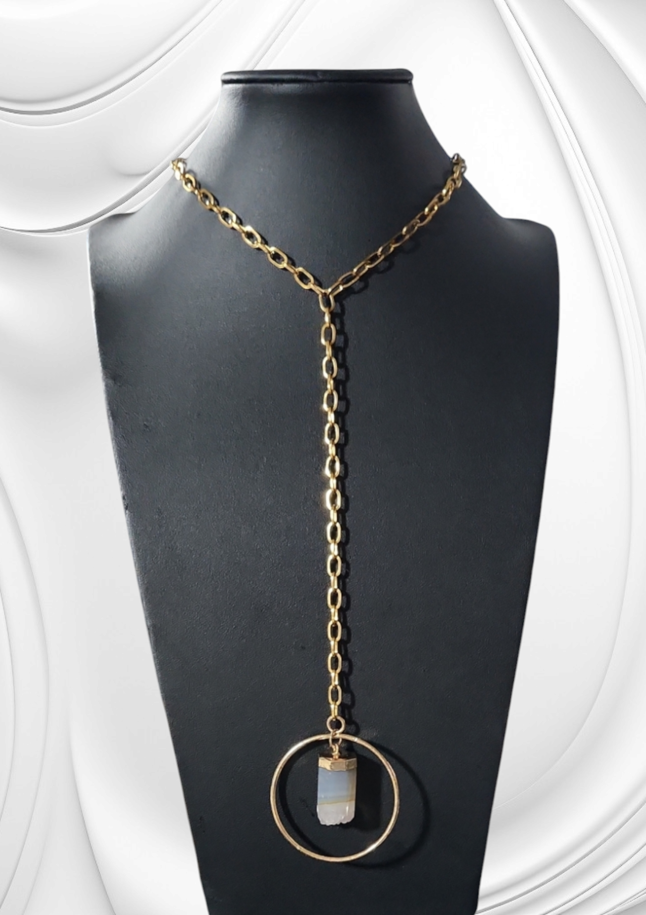 This elegant "Y" necklace features beautiful grey agate stones, adding a touch of sophistication and natural beauty to any outfit. Crafted with expert craftsmanship, this necklace is a must-have for any accessory collection. Its unique design allows for versatile styling options, making it perfect for both casual and formal occasions. Experience the subtle, yet powerful, benefits of grey agate with this stunning necklace.