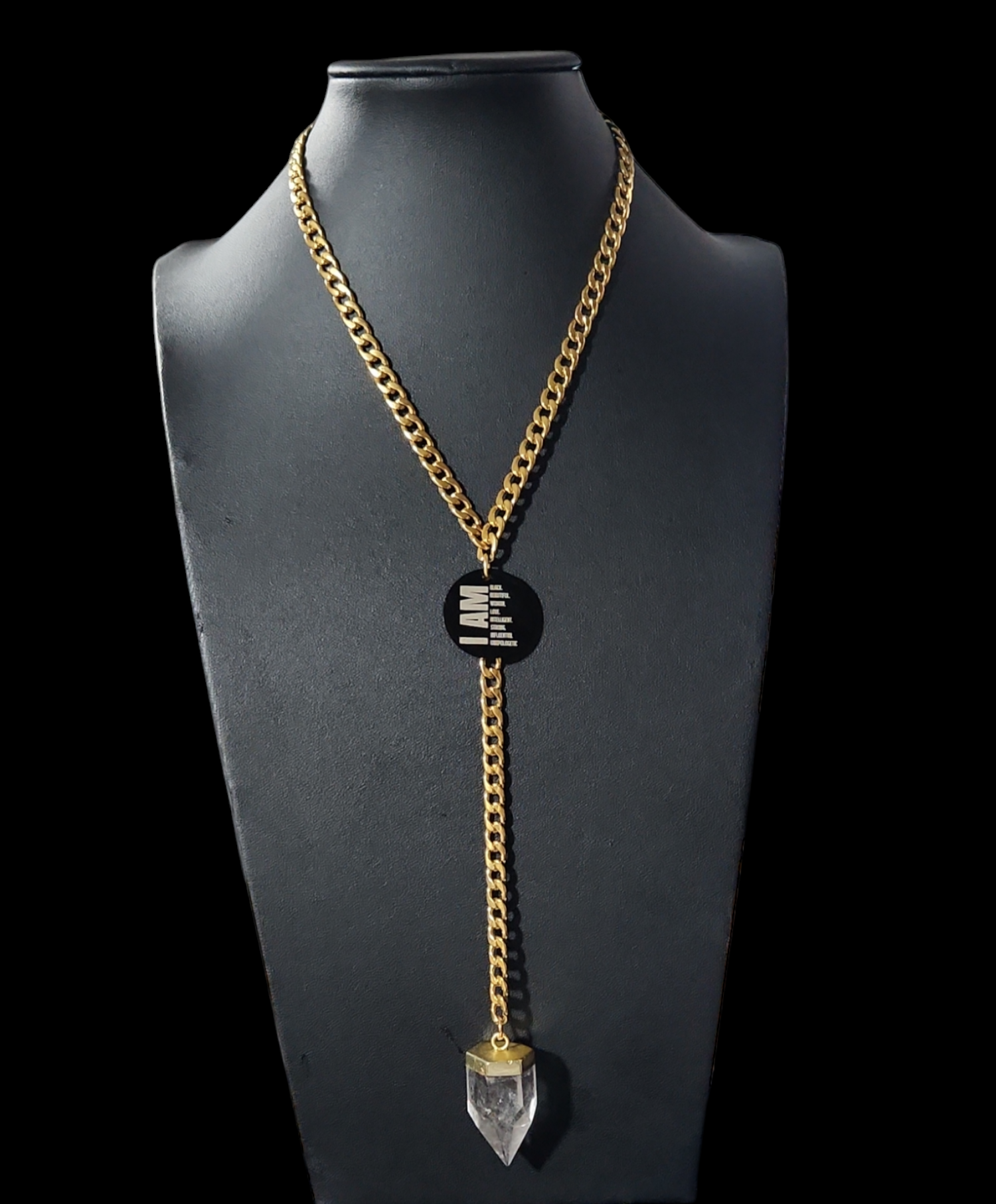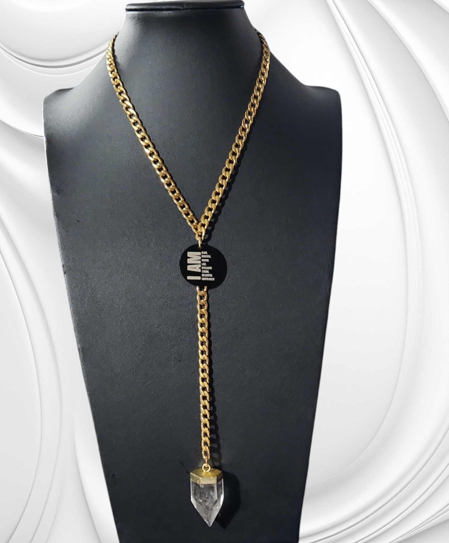Elevate your confidence with our "I AM" Clear Quartz Necklace drop. Made with gold and black stainless steel, this necklace features a powerful pendant stating "I AM Black, Beautiful, Woman, Love, Intelligent, and Unapologetic". Flaunt your individuality and embrace your strength with this statement piece.
