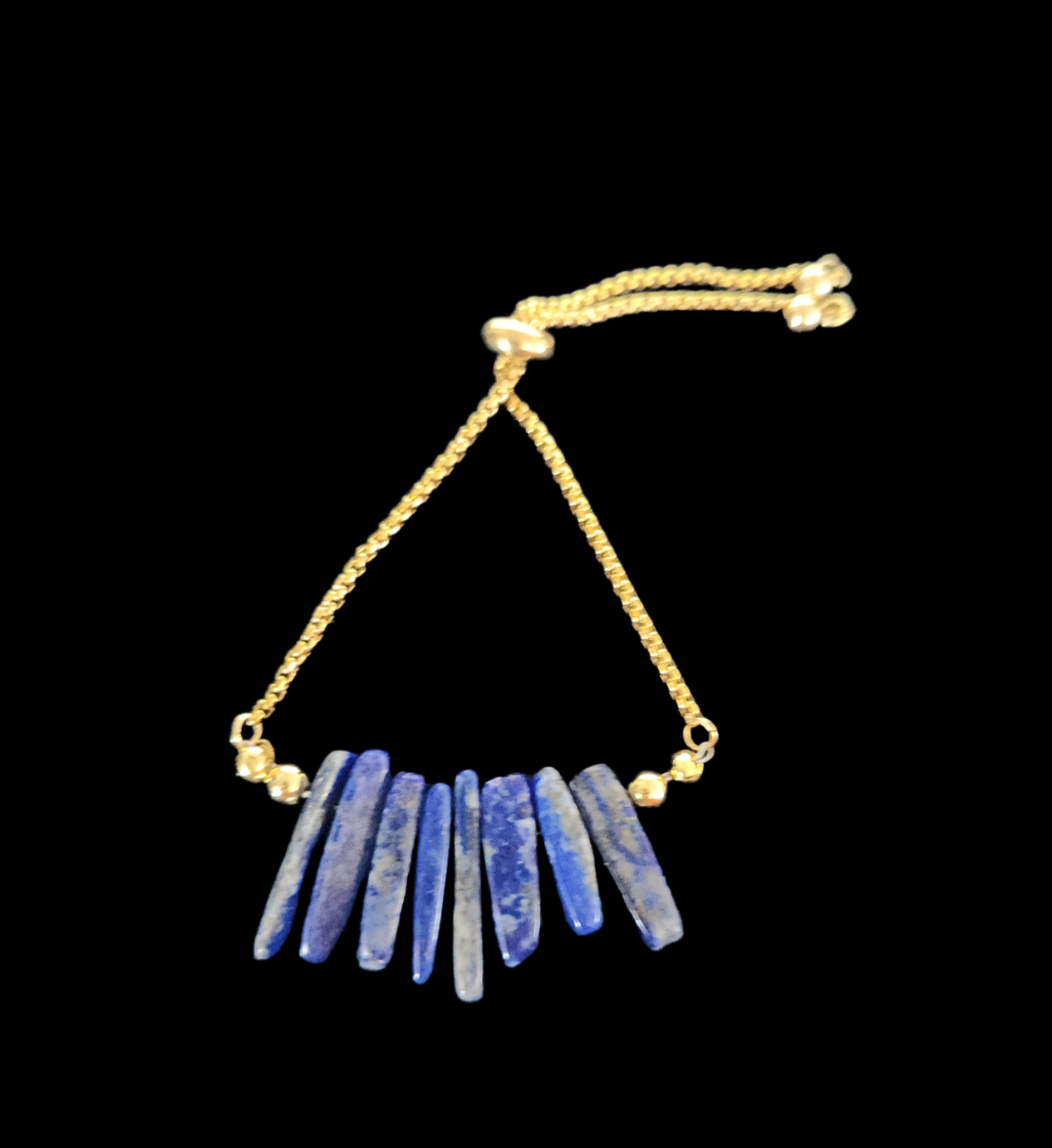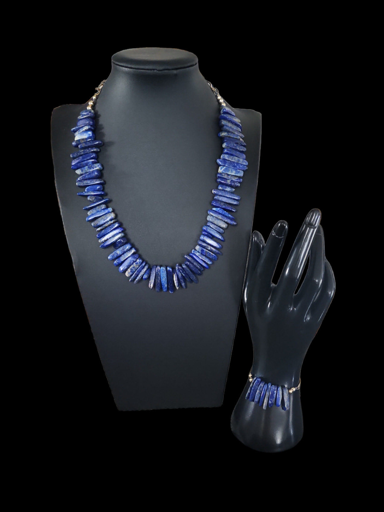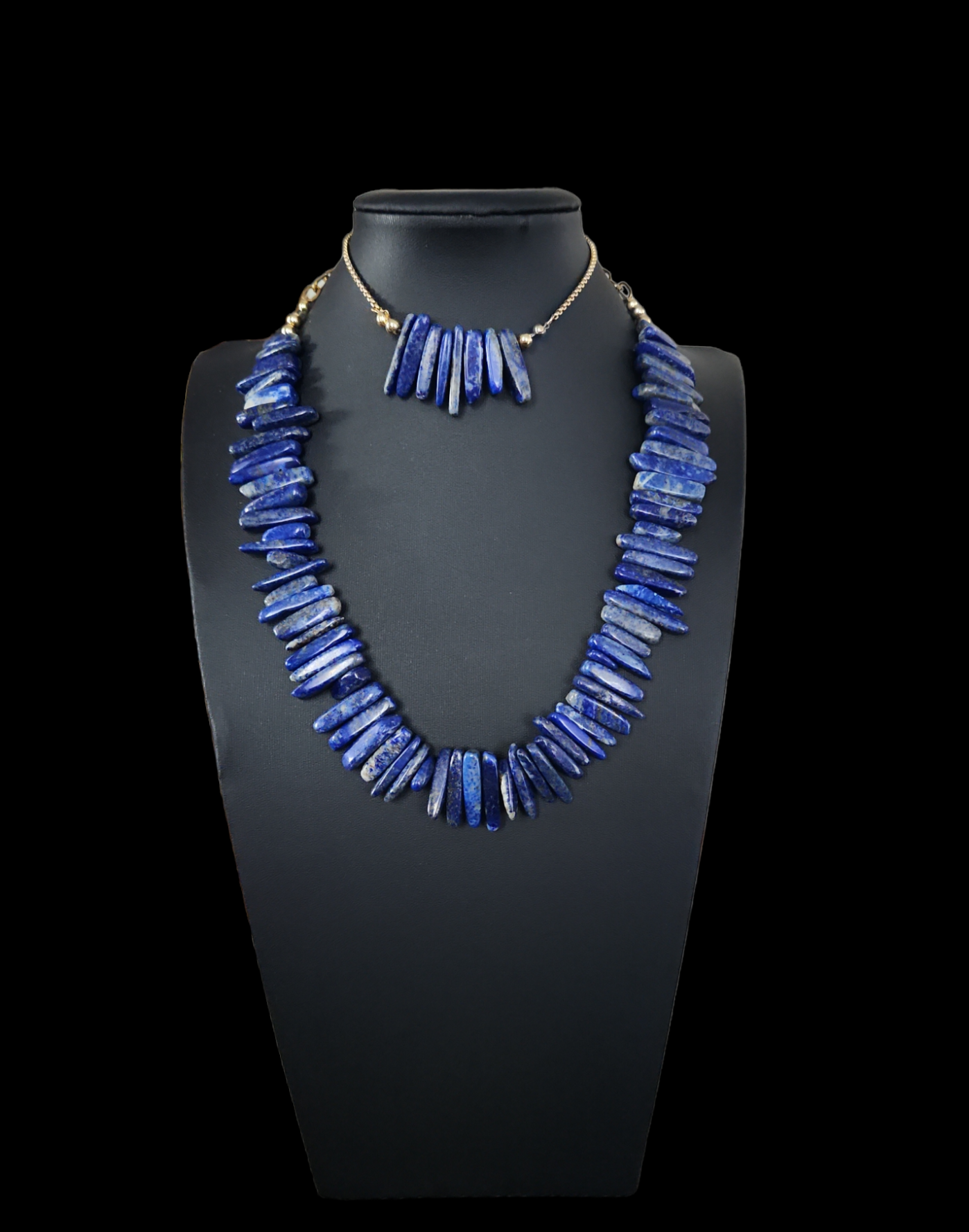 Wear the ancient power of wisdom around your neck with this stunning 9.5" Lapis Lazuli necklace set. The Lapis stone is known to open your third eye chakra, allowing you to access your intuition and inner truth. Make a connection to yourself and your sacred wisdom with this beautiful necklace set.