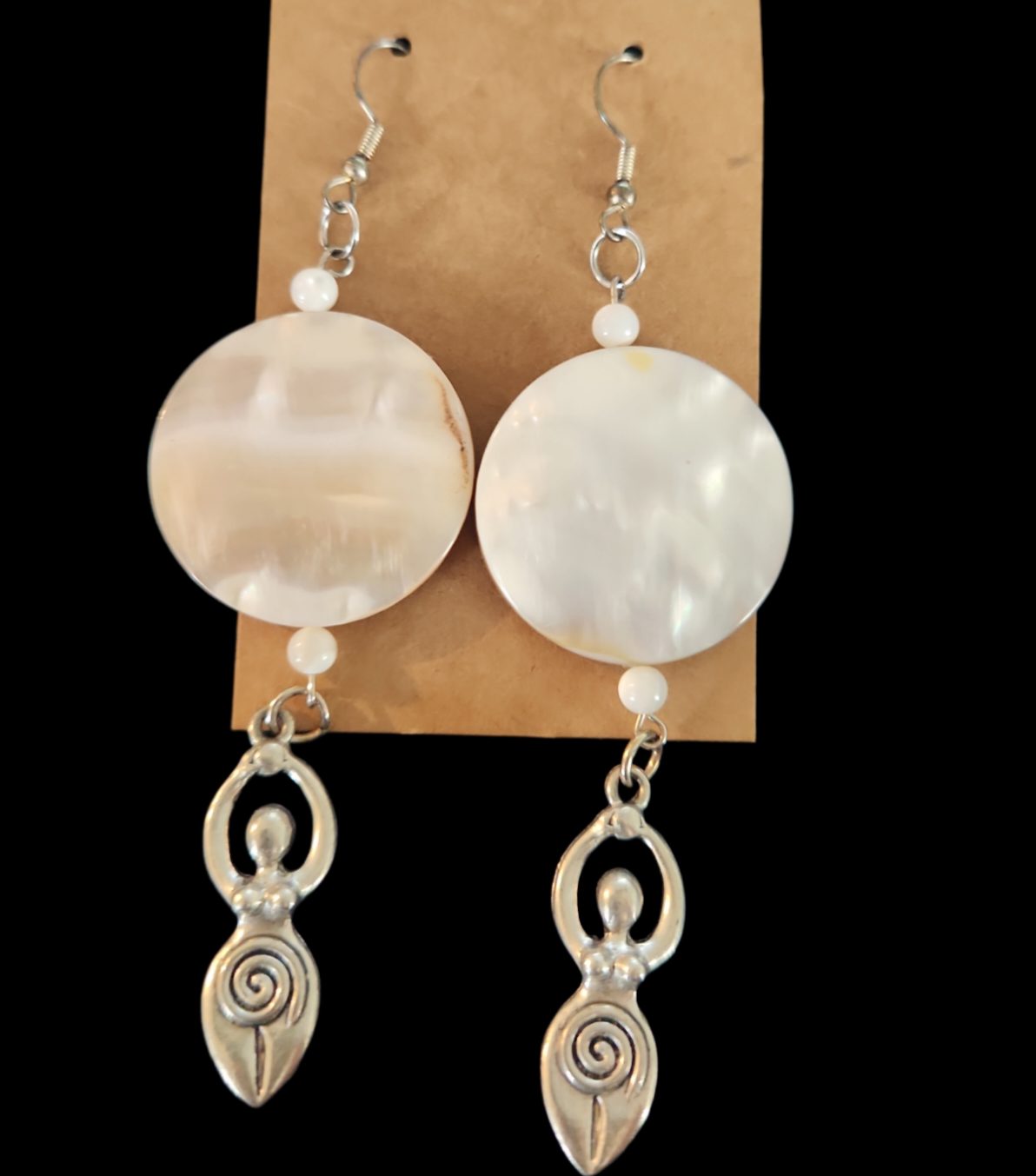 Adorn yourself with the striking beauty of these Mother of Pearl Goddess earrings. Crafted of silver-tone metal and finished with hypoallergenic posts, these earrings will be a beautiful addition to your jewelry collection. Plus, they offer more than just stunning looks -- the metaphysical properties of Mother of Pearl bring a gentle, calming energy to the wearer. Make these earrings a powerful part of your look!