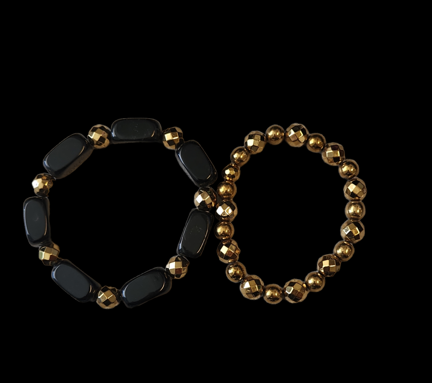 Onyx and gold coated hematite bracelet set