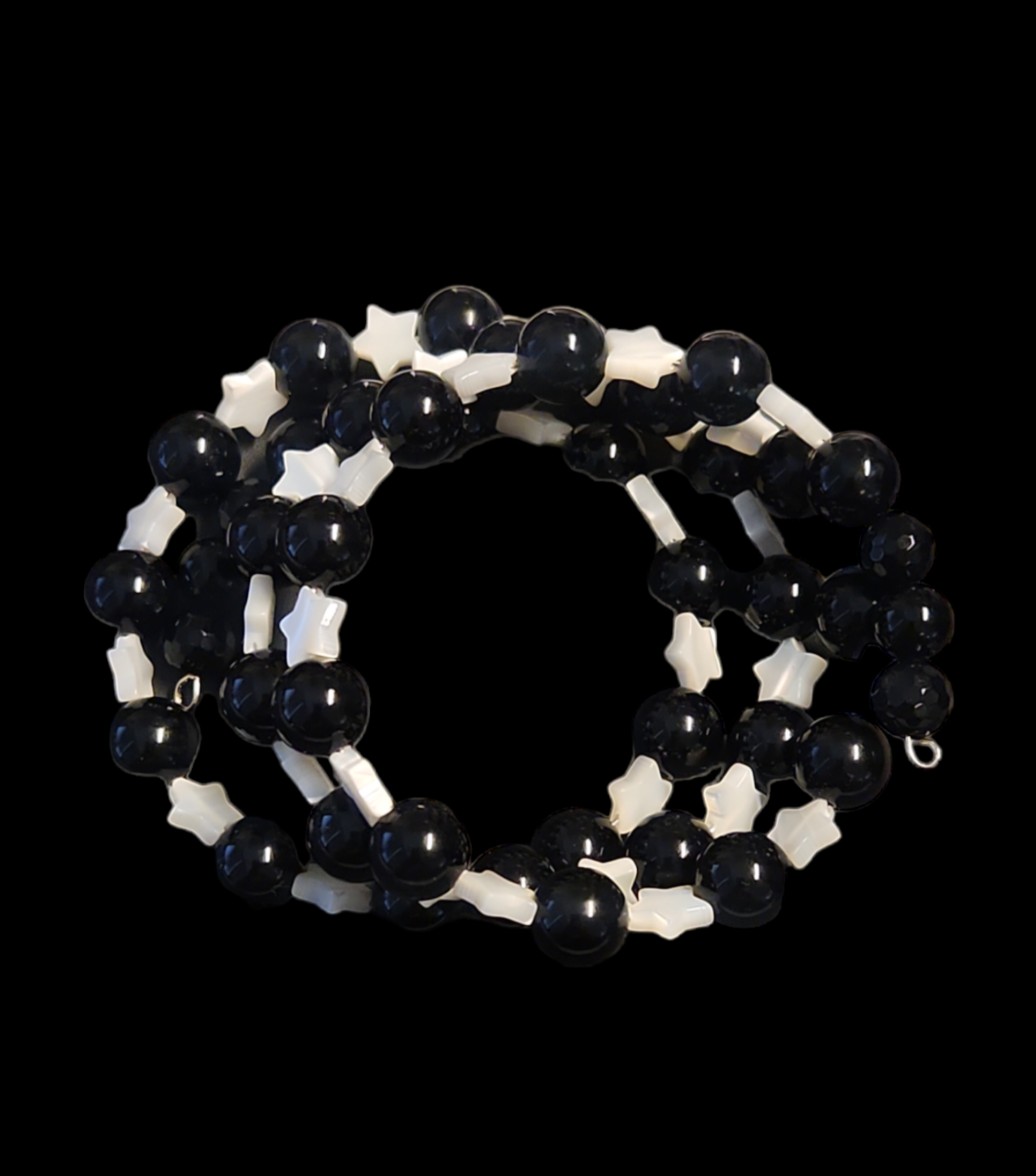 This "stars" wrap bracelet is the perfect combination of beauty and strength! Crafted with mother of pearl to bring its soothing energy, and onyx for protection, it radiates harmony and peace. Wear it to feel supported, energized, and relaxed.