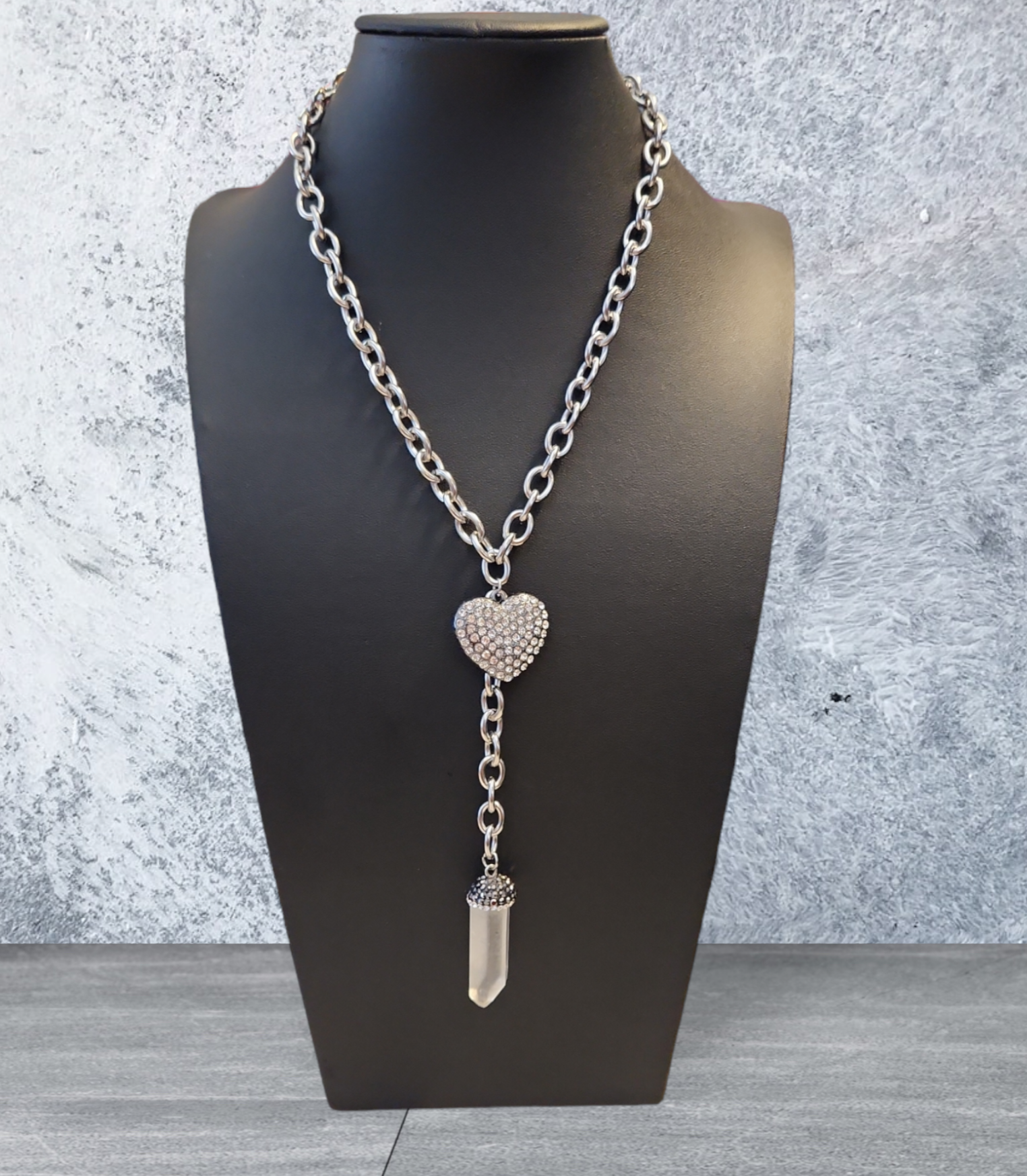 Crafted for elegance and durability, the Paved in Diamonds Clear Quartz Necklace boasts a stainless steel chain and a dazzling clear quartz pendant. The heart charm adds a touch of romance to this stunning piece. Elevate any outfit with this timeless and versatile accessory.