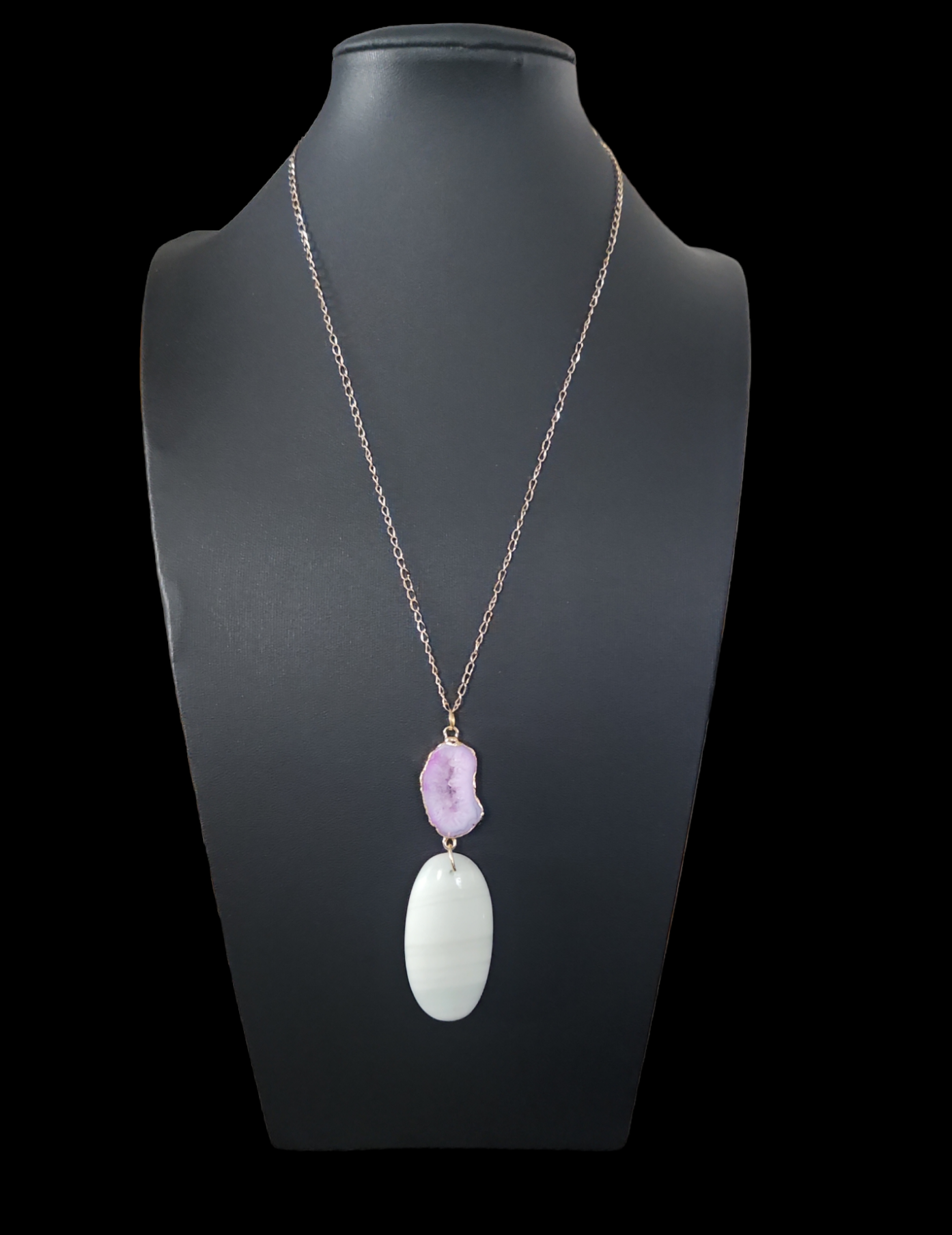 Stabilize and balance your energies with this beautiful 13" pink agate and Amazonite heart chakra necklace! Feel the power of agate as it filters harmful frequencies and cleanses your aura. Plus, Amazonite's healing properties help to release worries and fears, making it the perfect accessory for all your heart-centered endeavors.