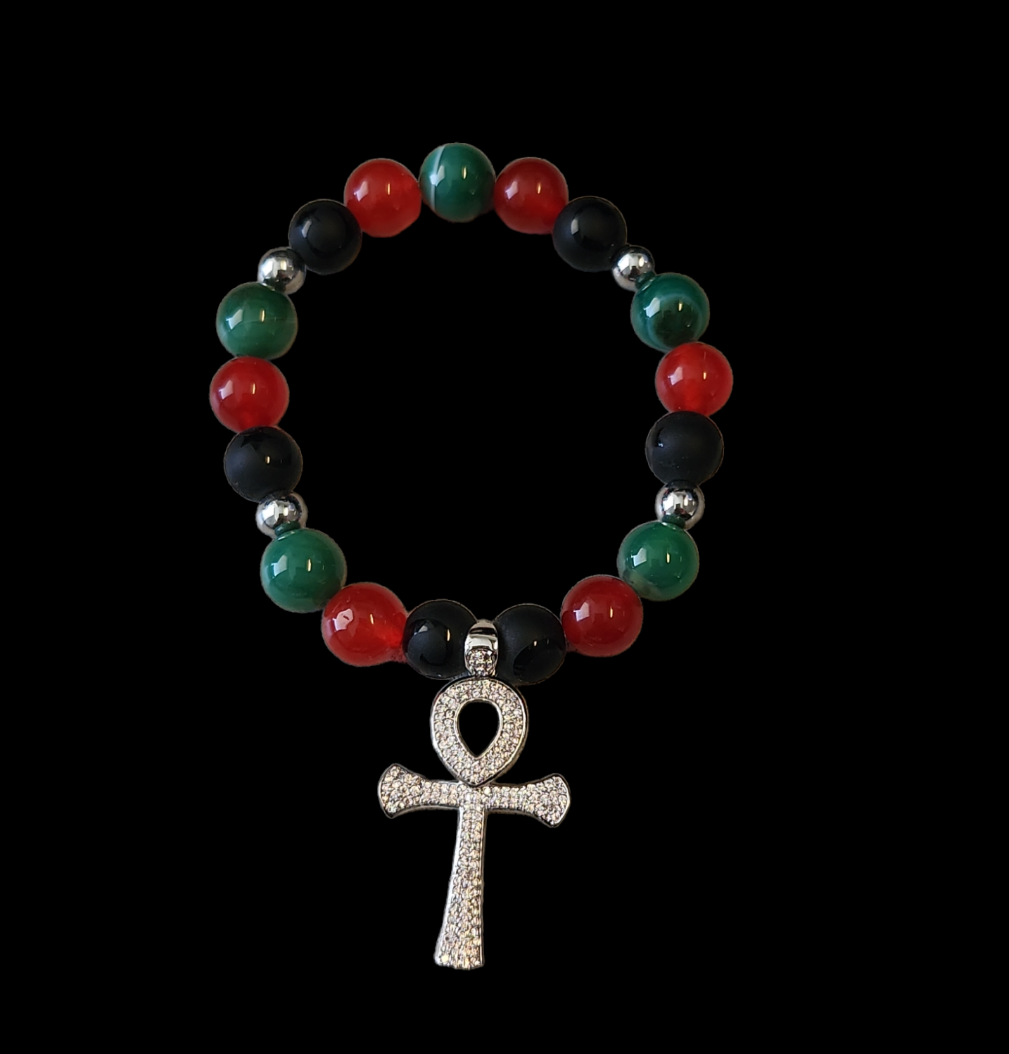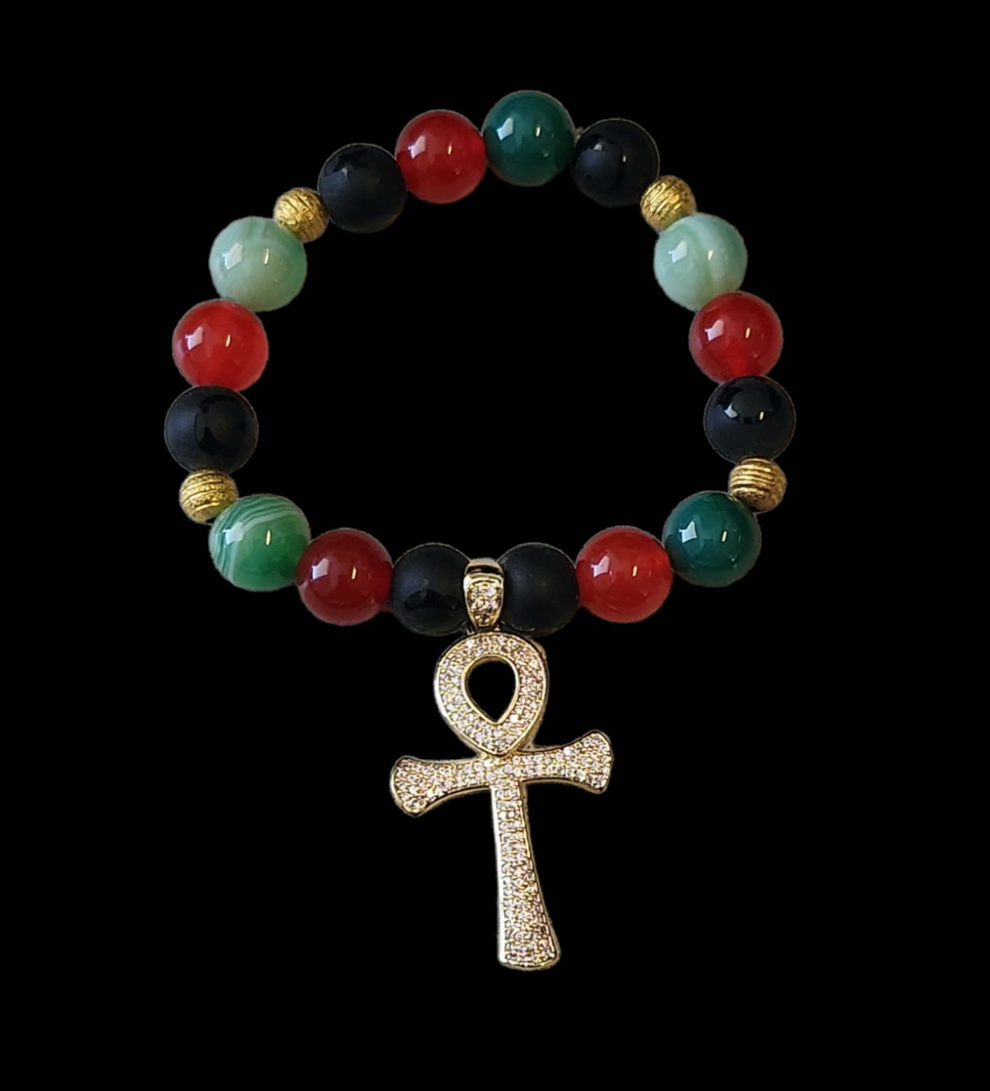 Celebrate your pride with our Pride Ankh Bracelets. Designed with onyx and agate crystals, this bracelet is carefully crafted to provide strength, stamina and protection. Onyx' powerful properties absorb negative energies and agate crystal will help you stay grounded and stabilized in times of need.