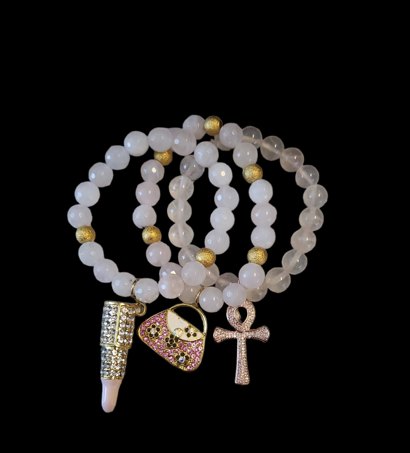 Let your heart be known with our Rose Quartz Charm bracelets. Crafted from the stone of unconditional love, this accessory will make a meaningful addition to any outfit. Rose Quartz vibrates with the energies of the Heart chakra to promote feelings of warmth, joy, and understanding.
