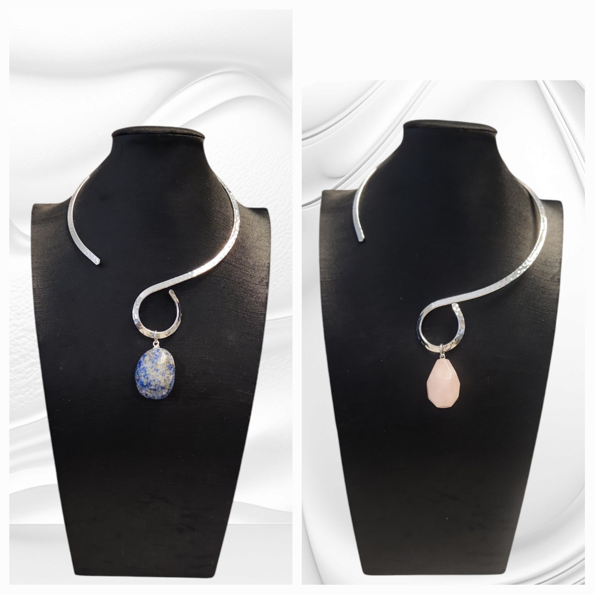 These elegant Chokers and Swirls Necklaces are available in two stunning options - rose quartz and Lapis Lazuli. Each necklace is crafted with precision and exudes a timeless beauty. Channel your inner strength and elegance with these statement pieces.