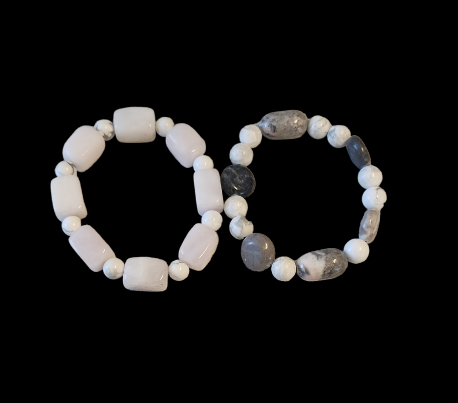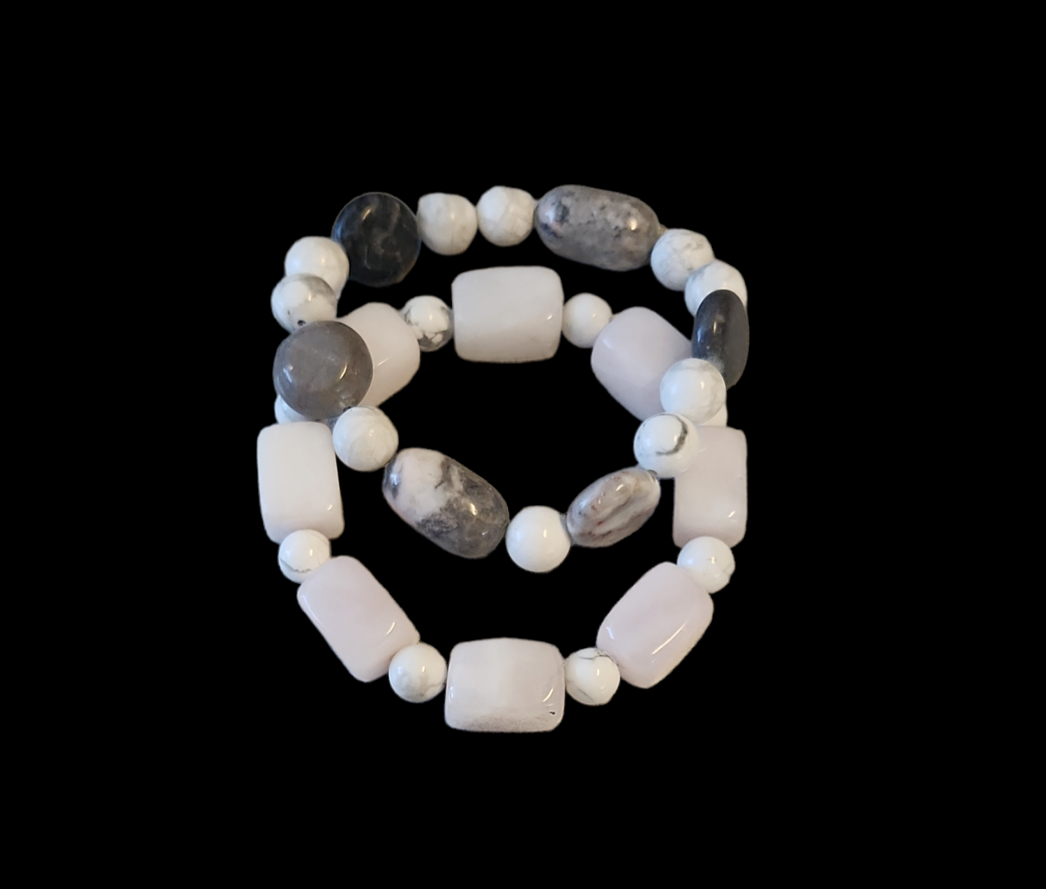 Rose Quartz, white Howlite & Zebra Jasper bracelet set