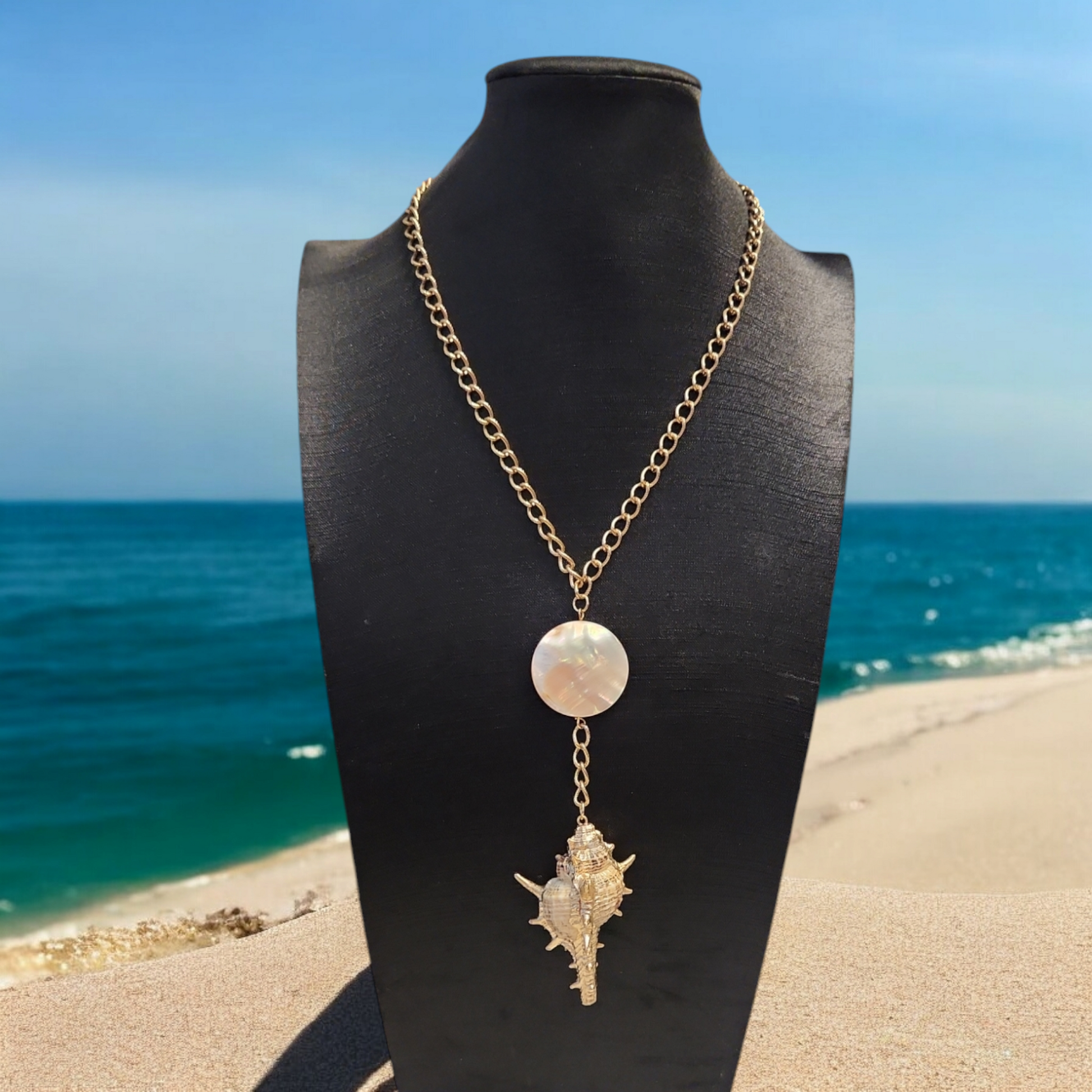 This Shell Necklace features beautifully crafted Mother of Pearl and natural shell, creating a unique and delicate piece of jewelry. Its natural materials make it a timeless and sustainable accessory for any outfit. Expertly handmade, it will add a touch of elegance and nature to your look.