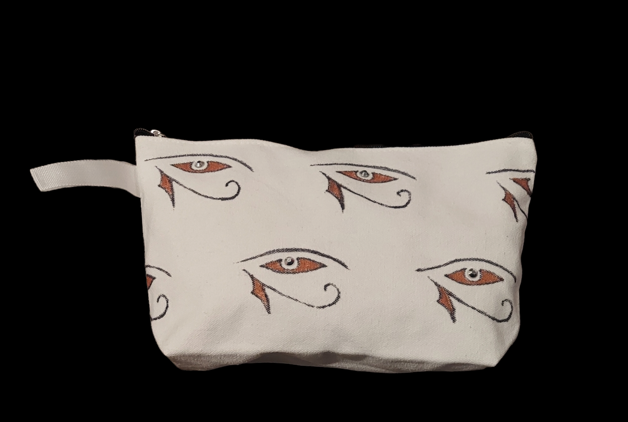 Elevate your everyday look with the Eye of Rah bag boasting glamorous rhinestone eyes. This 10"×6" accessory is the perfect small makeup bag or pencil pouch, featuring a convenient 5" handle and ready to ship now.