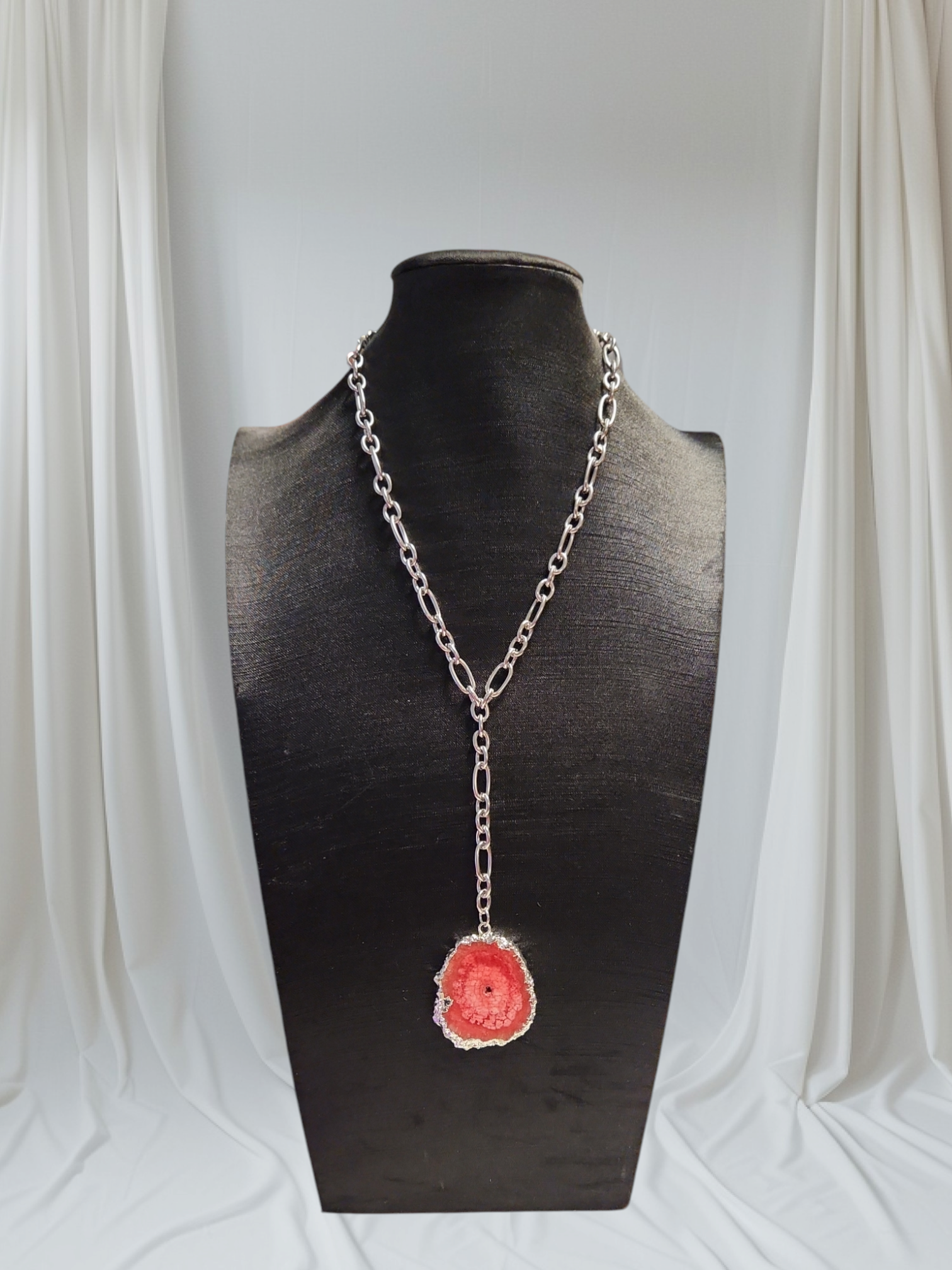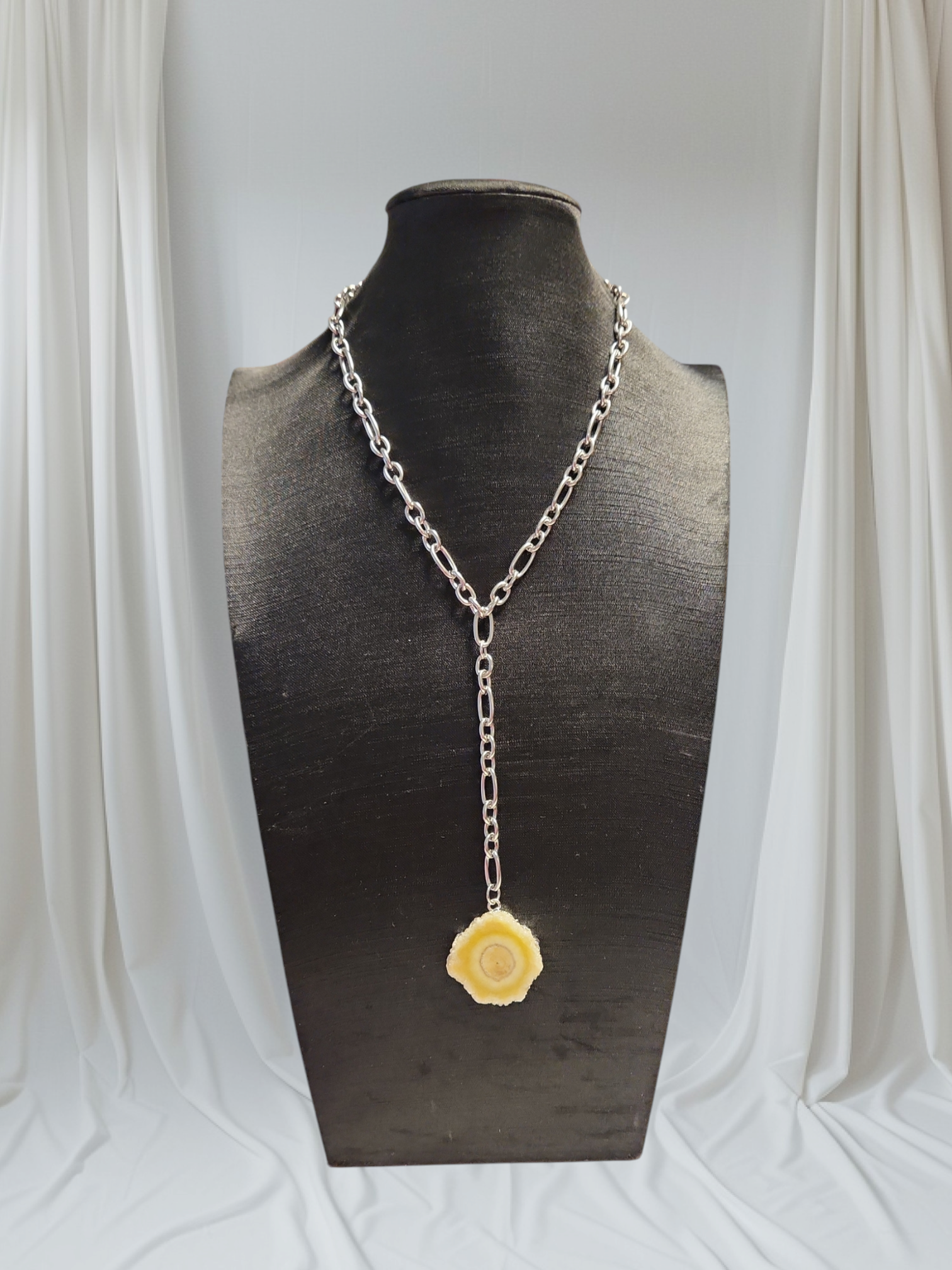 This silver agate necklace features a unique "Y" design and is made with high-quality stainless-steel chain and natural agate stones. Elegant and durable, this necklace adds a touch of sophistication to any outfit. Each agate stone is naturally formed, making each necklace one-of-a-kind. Elevate your style with this stunning piece.