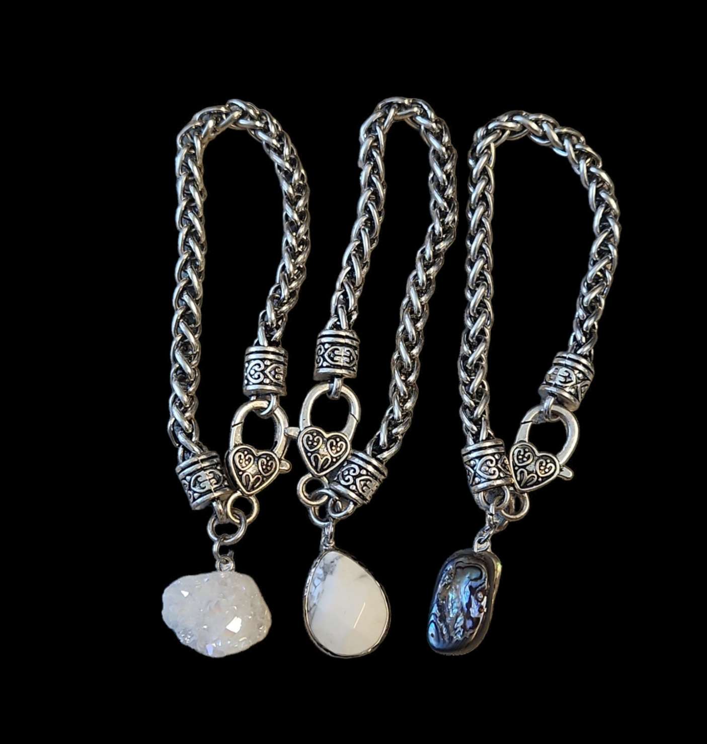 Highlight your style with this elegant silver chain link bracelet, adorned with a gemstone for extra sparkle. Its lightweight and comfortable design make it perfect for everyday wear. Show your unique style and impress everyone with this unique bracelet.