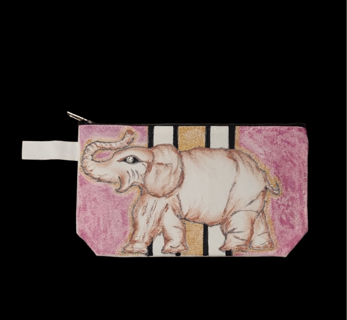 This Small Hand-painted Elephant Canvas Bag is perfect for carrying your favorite makeup, stationery for school, or whatever you need! Featuring a 10" width, 6" height, and 5" handle, you can ship this item right away.