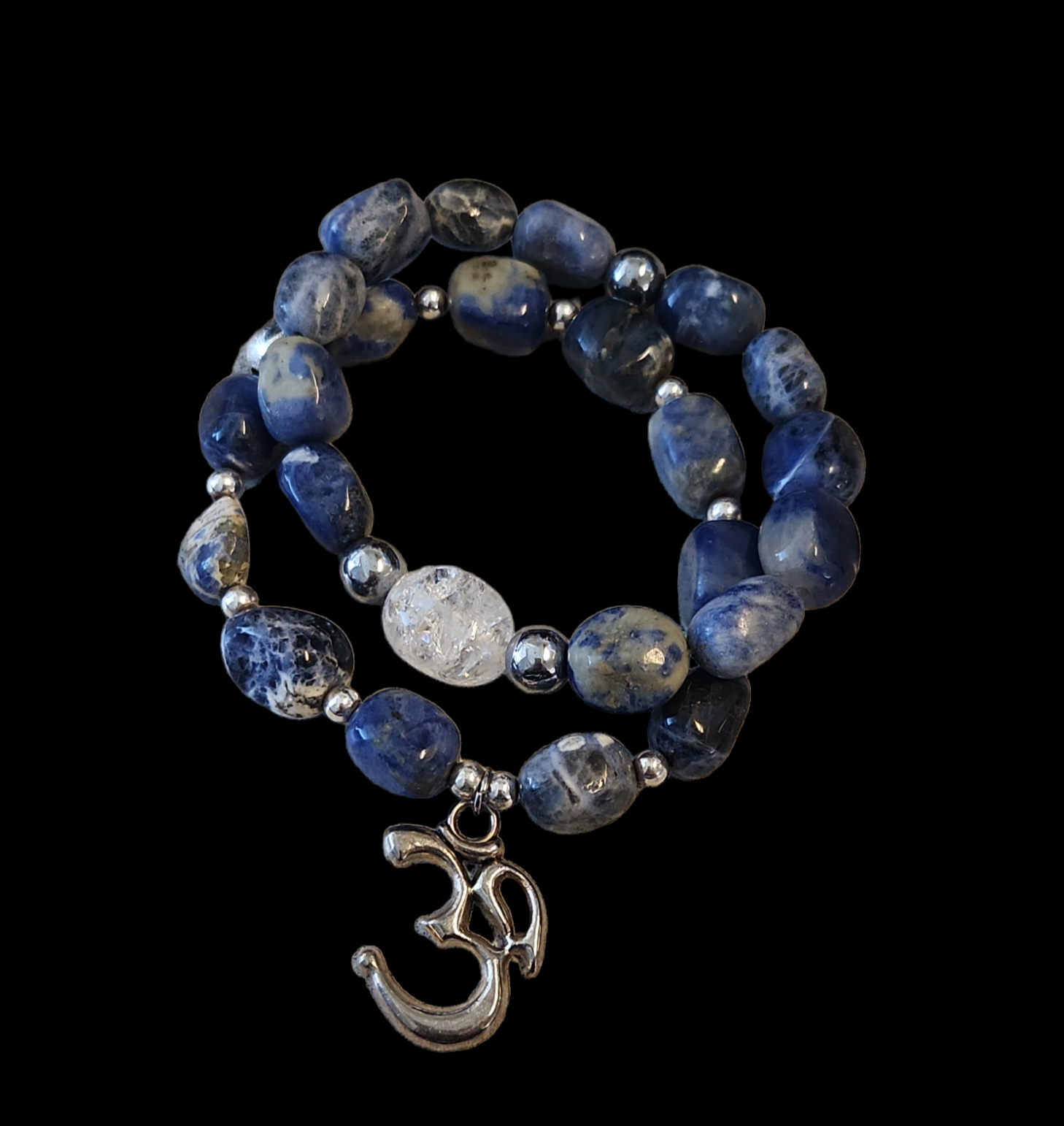This Sodalite Om bracelet set will be helpful for attaining insight and encouraging creativity. The stone is believed to help you become more self-aware, build optimism and bring balance into your life. Wear it and discover its healing properties.