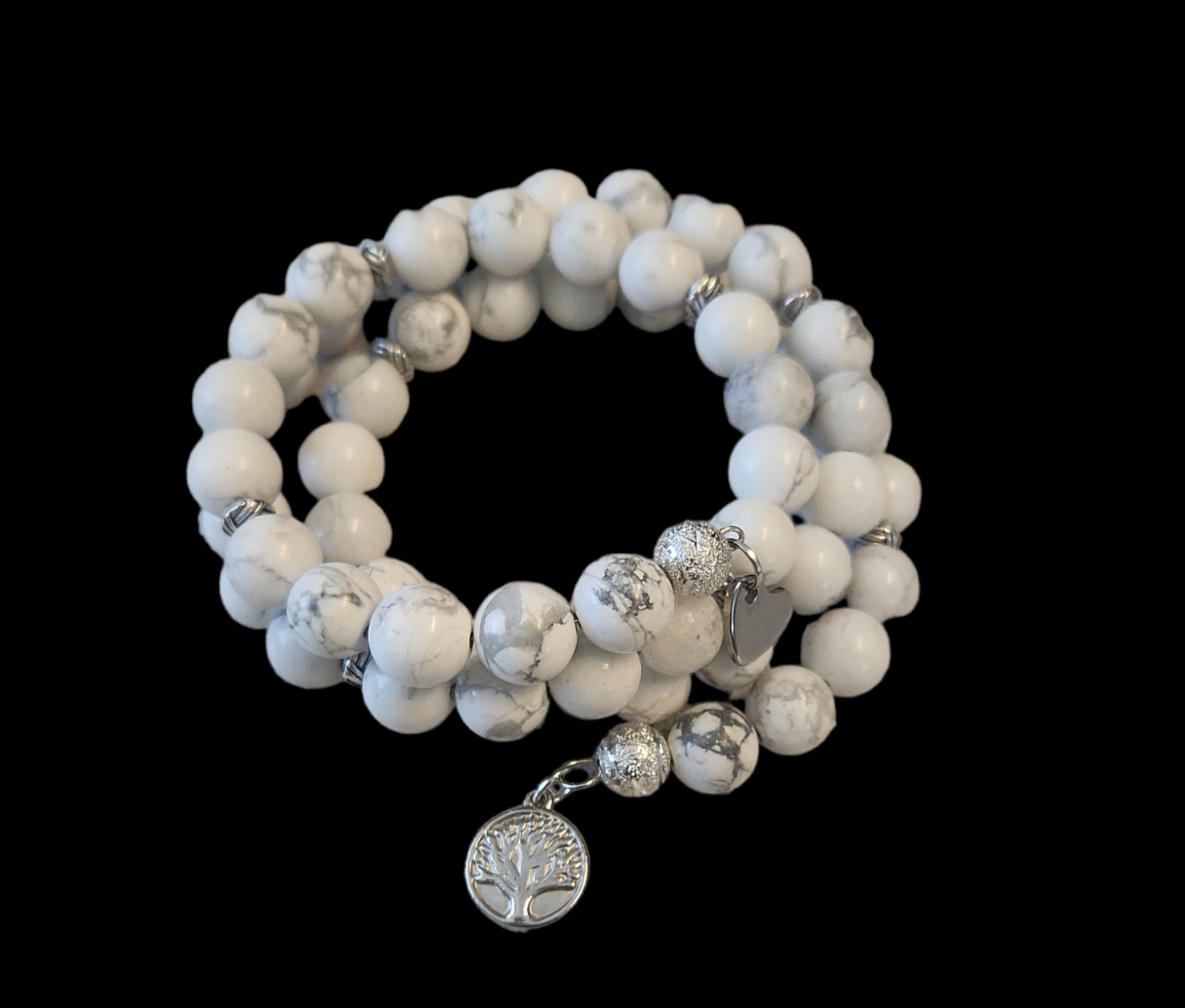 This beautiful wrap bracelet is crafted from white howlite, a crystal of awareness and compassion. Perfect for those looking to better understand themselves, people, the world, and life itself. This bracelet wraps around the wrist 3 times and it's like having three unique bracelets in one.