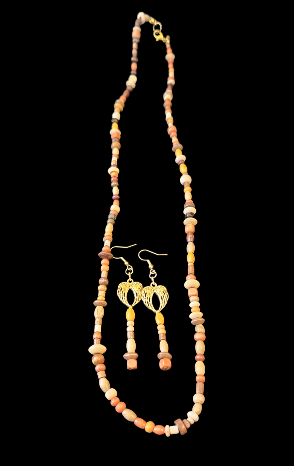 Add a unique and natural style to your look with this beautiful wood 14" necklace and earrings set. The natural texture of the wood gives the jewelry a warm and inviting feel, making it perfect for everyday wear.