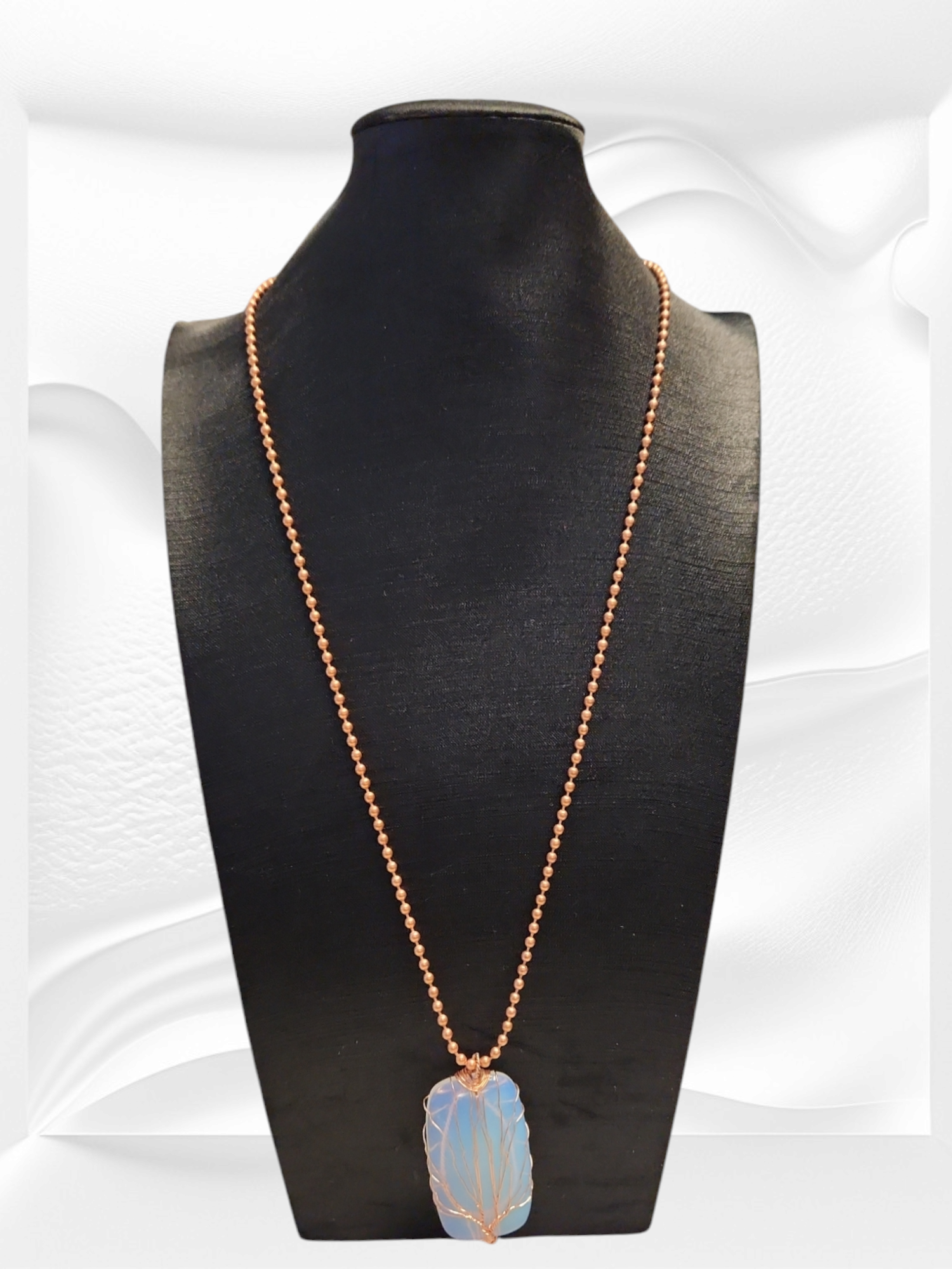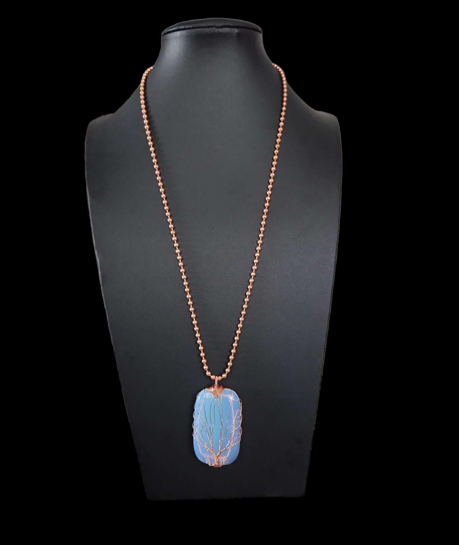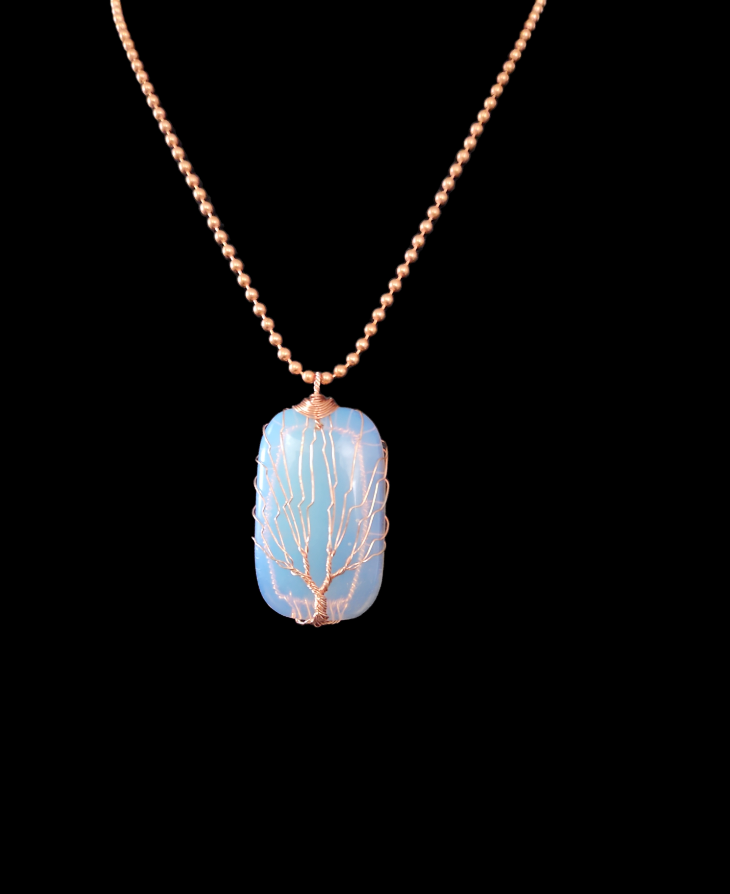 Bring positive energy into your life with this beautiful 13" Wrapped Tree of Life Opalite necklace. Opalite gemstones are believed to have healing properties, including the ability to reduce stress and fatigue. Plus, spiritually, it's associated with the crown and third eye chakras. Carry, place, or meditate with it to unlock its properties. 27.5" chain