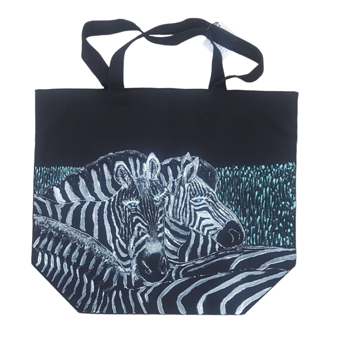 This stylish Zebra Print tote bag has a 19" wide and 16" long design perfect for carrying everyday items. With two pockets and a 20" strap, everything will stay securely tucked away without any zippers. Perfect for all of your adventures. Available to ship immediately.